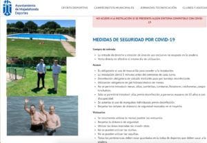 LIDIA GARCIA. El alcalde de Majadahonda, José Luis Alvarez Ustarroz (PP), se ha hecho ya la foto con la inauguración de la piscina municipal de Huerta Vieja este miércoles 1 de julio (2020). No obstante, se ha cuidado mucho de no aparecer bañándose, como hizo el fundador de su partido, Manuel Fraga, cuando cayó una bomba atómica en Palomares (Almería) poniéndose el bañador para tranquilizar así a los bañistas. La apertura se ha realizado con una semana de retraso con respecto a la de Las Rozas, con objeto de extremar las medidas de seguridad. Entre ellas destaca un aviso para los vecinos, como muestra la imagen con las principales instrucciones de uso: «no acudir a la instalación si se presenta algún síntoma compatible con Covid-19«. Serán por ello los empleados municipales los que tengan que advertir si los usuarios tienen o no el virus. El Ayuntamiento ha insistido en la inauguración con su segunda nota de prensa, muy parecida a la que ya emitió anteriormente, en la que prescinde del dato informativo más relevante: el «precio COVID-19 para empadronados» es de 1,62 € para adultos y de 1,37 € para infantil y mayores de 65 años, el doble para no empadronados. Estos tickets corresponden a la mitad de la entrada habitual, según los precios públicos en vigor de martes a domingo (los lunes cierra por descanso del personal). Y aunque la piscina municipal acarreó algunos problemas en invierno que dieron lugar a una sonora protesta de sus usuarios, esta vez parece que las aguas están mas tranquilas.