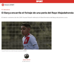EL JUGADOR OBJETO DE LOS DESEOS DE LOS BLAUGRANA SE LLAMA YOUSSEF KHANDRI y lo definen como «un alevín de gran proyección». Y añade que Youssef Khanfri ha marcado esta temporada 7 goles con el Sub-12 del Rayo Majadahonda que juega en el formato de fútbol-7. Youssef también ha disputado 2 partidos en el conjunto de su mismo club que compite en fútbol-11″. En su caso, le ocurre como a Lamine Yamal, ya que «hasta el Sub-12 lo normal es que las incorporaciones provengan todas del fútbol base catalán pero cuando los ‘scouters’ del Barça detectan un jugador especial se decide realizar una excepción y ficharlo. En principio, cuando se decide incorporar a joyas del territorio español es para el Sub-13 pero la competencia es tan grande que a veces es necesario adelantarse un año».