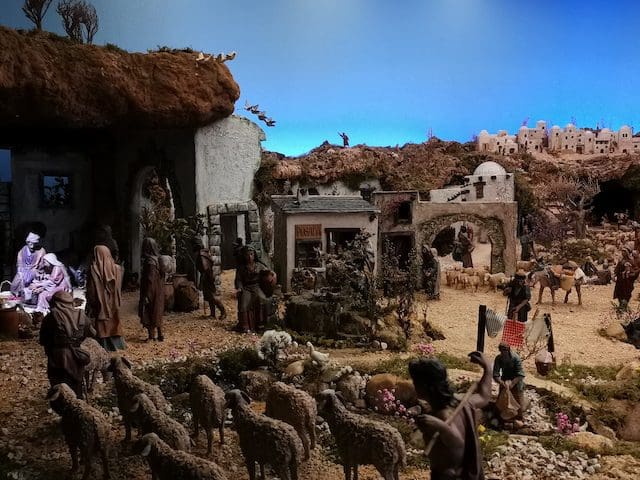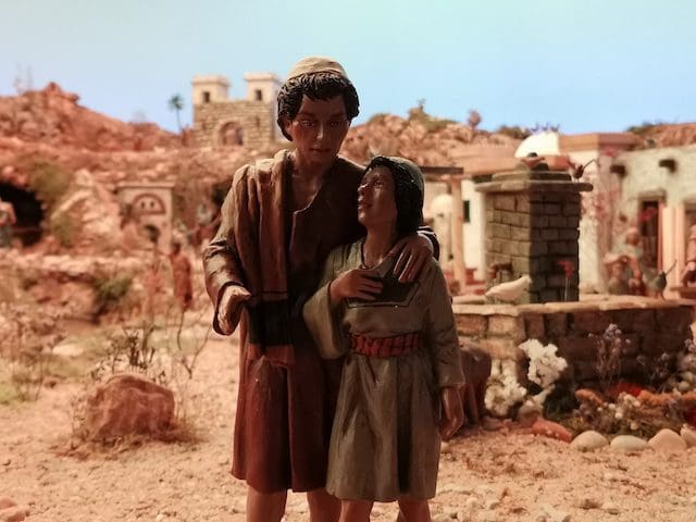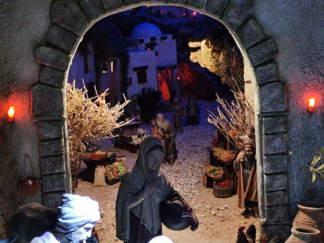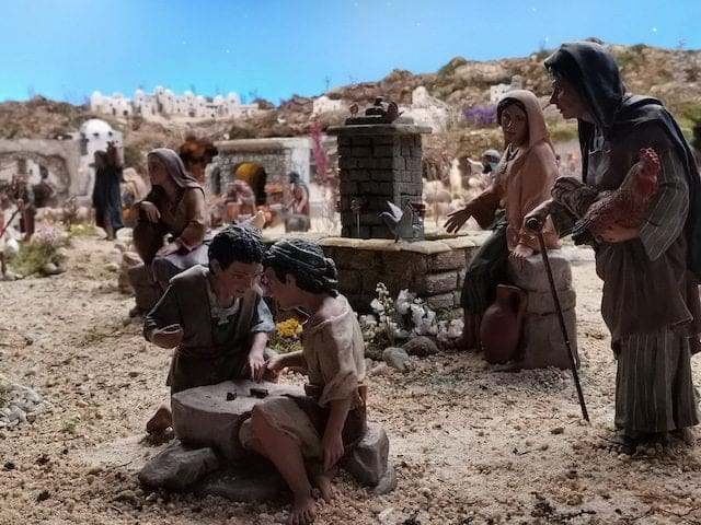 JULIA BACHILLER. Un año más (2021), el Belén de la parroquia de Santa Catalina Mártir de Majadahonda no deja de sorprendernos. En su habitual ubicación en la capilla del templo y con las mismas dimensiones, este Belén ofrece cada Navidad un diseño diferente e introduce novedades que cada año le confieren la cualidad de ser un referente en esta ciudad. Desde que el pasado 12 de octubre comenzase su instalación, han transcurrido más de 2 meses en los que la dedicación y el cariño puesto en su montaje quedan plasmados al visualizar el conjunto de la obra. Como en años anteriores, se ven representados momentos que se recogen en las Sagradas Escrituras, desde la creación con Adán y Eva y el Bautismo, hasta algunos de los hechos que acontecieron al nacimiento de Jesús: el sueño de San José, la anunciación del Ángel a los pastores, la visita de María a Isabel, la huida a Egipto o el Niño en el Templo, escena que está representada frente a una Sinagoga… Estas, entre otras, son algunas de las escenas que se pueden ver representadas en este monumental nacimiento. Todo ello acompañado de un laborioso y minucioso atrezzo que nos confiere la posibilidad de imaginar cómo se vivía en aquellos años: las montañas, los árboles, los animales, los distintos canales donde se abastecían de agua, las diferentes construcciones, etc… Y nos aporta la posibilidad de diferenciar entre el día y la noche, lo que le hace transformarse todo el Belén en un escenario diferente. La música también tiene un papel relevante, pues se ha incluido el sonido de diferentes animales cuando llega el amanecer. El Belén será inaugurado oficialmente y bendecido este 24 de diciembre de 2021, tras la misa del Gallo, a las 00:00 horas, como mantiene la tradición de esta parroquia. Y a partir de dicha fecha podrá ser visitado por todos los vecinos.
