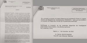 «TENIAN EL DEBER DE CUSTUDIA Y PUDIERON FACILITAR LAS PREGUNTAS». De la documentación aportada se deduce que tanto el Presidente del Tribunal, como la Presidenta suplente, como el Secretario y el Secretario suplente del mismo tenían el deber de custodia del listado de las preguntas del primer ejercicio tipo test y pudieron facilitar las mismas a las dos únicas opositoras que aprobaron el primer ejercicio, M.ª Carmen Alejo Serrano, que obtuvo una calificación de 9,01, y Carmen Margarita Huerta García, que obtuvo una calificación de 9,63. El Estatuto Orgánico del Ministerio Fiscal, interpretado por la Circular 4/2013, establece que, constando determinada la persona y los hechos denunciados, procede remitir las actuaciones directamente al órgano competente. Así, procede la remisión de estas Diligencias de Investigación Penal al Juzgado Decano de Majadahonda, finalizadas por denuncia, para que se proceda a la incoación de Diligencias Previas de Procedimiento Abreviado. Notifíquese la incoación de las presentes diligencias de investigación preprocesal al denunciante a los efectos oportunos. Así lo decreto y firmo. Madrid, a 1 de diciembre de 2025. MAÑANA: LAS DILIGENCIAS DE ORDENACIÓN DE LA FISCALÍA SOBRE EL FRAUDE EN EL «CASO OPOSICIONES» DEL AYUNTAMIENTO DE MAJADAHONDA.