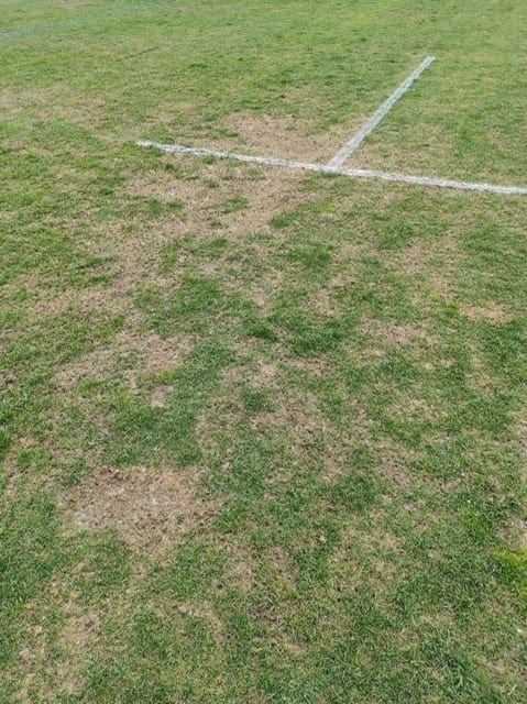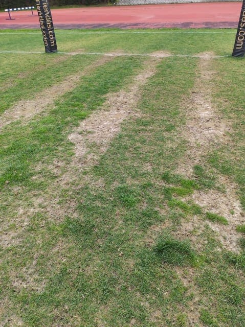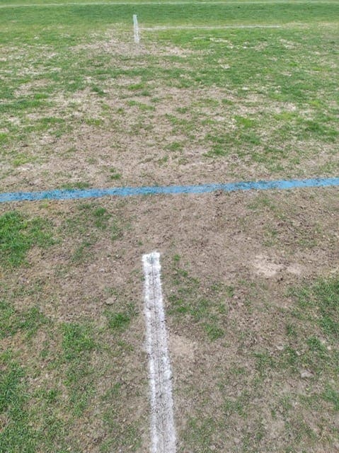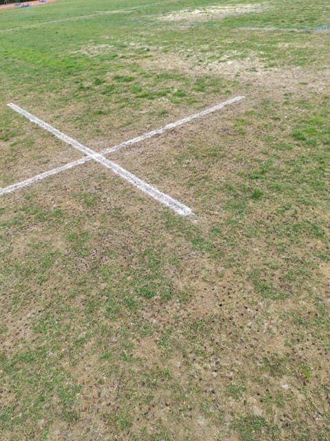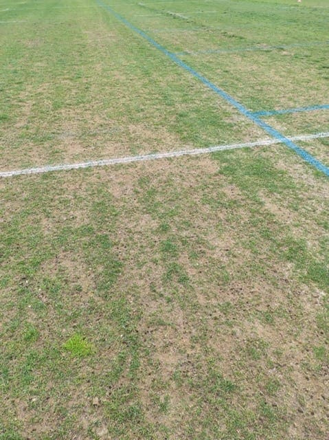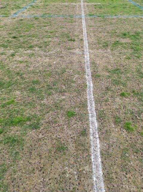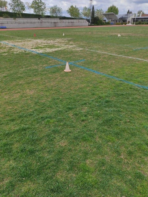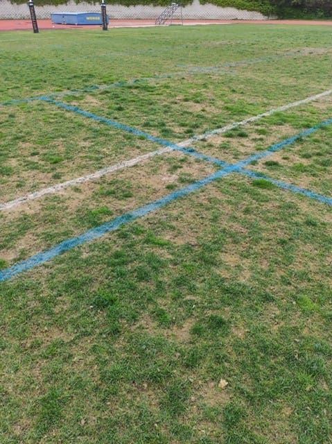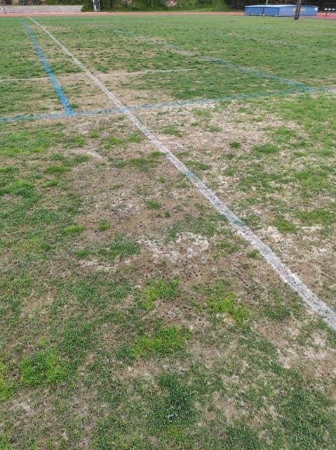 Siguen prohibiendo utilizar el césped para los lanzamientos y encima ahora está hecho un patatal!! Las fotos hablan por si solas…
