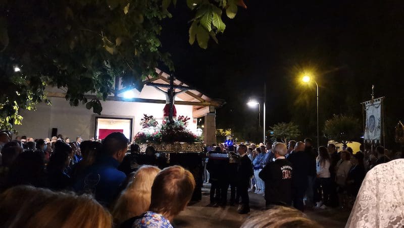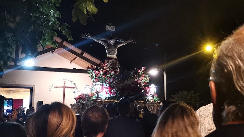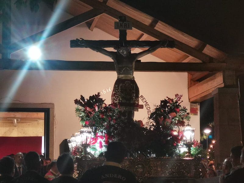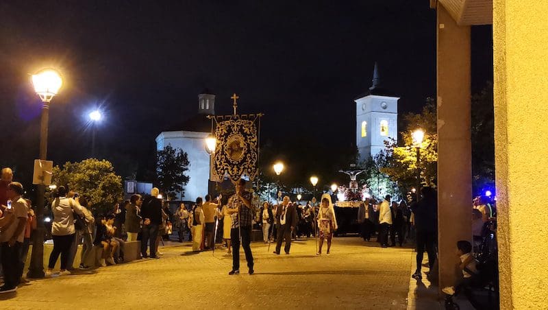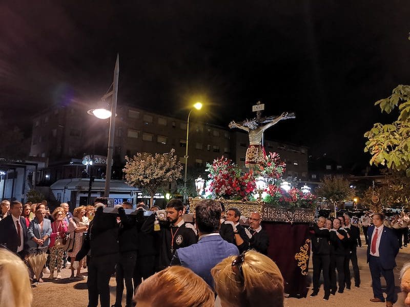 JULIA BACHILLER. Un año más, este jueves 15 de septiembre (2022), el Santísimo Cristo de los Remedios regresó a su ermita tras su estancia de 3 días en la Parroquia de Santa Catalina Mártir. Días en los que en su honor se realizó un triduo, presenció la imposición de las cruces a los nuevos hermanos de su Hermandad, se le presentaron y bendijeron los niños de Majadahonda, y en el día de su despedida tuvo lugar una Misa Solemne en su honor. Llegada la tarde, se procedió a acompañarlo hasta su habitual morada. La temida lluvia incluso colaboró para ocultarse y no deslucir o entorpecer la majestuosa procesión organizada en su honor.