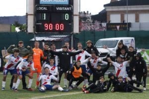 GOL EN EL MINUTO 82. «Aun así, entre el parón del partido por el granizo y el resto de elementos climáticos, no hubo goles antes del descanso, que llegó con 0-0 en el marcador. Nada más regresar al terreno de juego, el Rayo Majadahonda volvió a aproximarse a la portería rival, aunque el campo resbaladizo no ayudaba a que nuestros delanteros consiguieran conectar los remates. Además, por si la primera parte había sido ligera en cuanto a factores desfavorables, se puso a nevar. Samu tuvo la ocasión más clara del primer tramo de la segunda parte, pero el portero rival atrapó su disparo. En el minuto 58, el colegiado anuló un gol al Rayo Vallecano por fuera de juego y, a partir de ahí, el Rayo Majadahonda tomó el control del partido. El dominio se consumó en el minuto 82, cuando Gordo consiguió el 1-0 con un remate de cabeza muy bien colocado. En la celebración del tanto, además, el árbitro expulsó a Marco por agredir a Rodri, lo cual nos dio la tranquilidad de ser un hombre más de cara a los últimos minutos. Al final, el encuentro concluyó con 1-0«, concluye el Rayo Majadahonda.