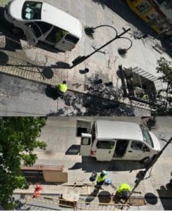 EL DUENDE MAJARIEGO (EdM): Ambas fotos se han tomado en el mismo lugar, a la misma hora pero en distinto día. La primera es del 25 de marzo de 2020. La segunda, del 28 de mayo. En una, la misma furgoneta mira hacia el Ayuntamiento, mientras que la otra hacia Colón. Los operarios hacen lo mismo: levantar el odioso pavimento de la Gran Vía y volver a cubrirlo. En medio de ambas imágenes, dos meses y una crisis sanitaria. Uno no llega a entender cómo es posible que en apenas dos meses haya que levantar las baldosas y volverlas a cerrar. ¿Será que no hay otra cosa que hacer en las calles de Majadahonda? ¿O será que como le damos una pasta gansa a la contrata, hay que tenerla bien entretenida? Y venga a levantar, tapar y vuelta a levantar. Y vuelta a tapar. Nuestra Gran Vía peatonal, tan mal terminada, con esas baldosas tan incómodas para el paseo, resultar ser objeto de deseo reformador, cuando el concurso para cambiar las baldosas ha quedado desierto al menos dos veces consecutivas. ¿Cuándo será la tercera? ¿Será a la vencida? Sea como sea, el Ayuntamiento y sus servicios técnicos harían bien en inspeccionar este servicio para que la empresa no haga lo que no pude hacer y cobre lo que no debe cobrar. ¡Mucho ánimo para todos! Puede remitirme sus comentarios y noticias para esta sección al correo electrónico duendemajariego@gmail.com.