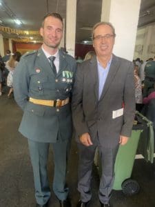 SIN EMBARGO, CREO FIRMEMENTE QUE INSTITUCIONES COMO LA NUESTRA, O COMO LA POLICÍA LOCAL DE MAJADAHONDA, con la que compartimos hoy celebración, y en general cualquier profesión de servicio a los demás, no nace y muere en los componentes que la integran, sino que cualquier pequeño gesto de cualquiera puede ser fundamental para cambiar el mundo y hacerlo mejor. Esto queda fielmente reflejado en la simbología de nuestro escudo, donde cobran protagonismo la autoridad, la fuerza y la unidad de Estado, al que pertenece y sirve la Guardia Civil. En unos instantes rendiremos un sentido homenaje a todos los caídos por España, pero antes me gustaría aprovechar para hacer una especial mención al guardia civil Miguel Terre, del puesto de Villanueva de la Cañada y perteneciente a nuestra compañía: una grave enfermedad se lo llevó este verano, sin embargo nunca pudo ni con su alegría ni con su ilusión. El día de su muerte, su sargento recordaba como el mismo día que le ingresaron, le solicitaba que le tuviese en cuenta para trabajar en el dispositivo de seguridad durante la celebración de la Navidad. Apenas le quedaba un año para jubilarse pero mantenía el entusiasmo de su primer día de servicio, haciendo honor a como le tenían bautizado en el puesto: “el eterno eventual”.