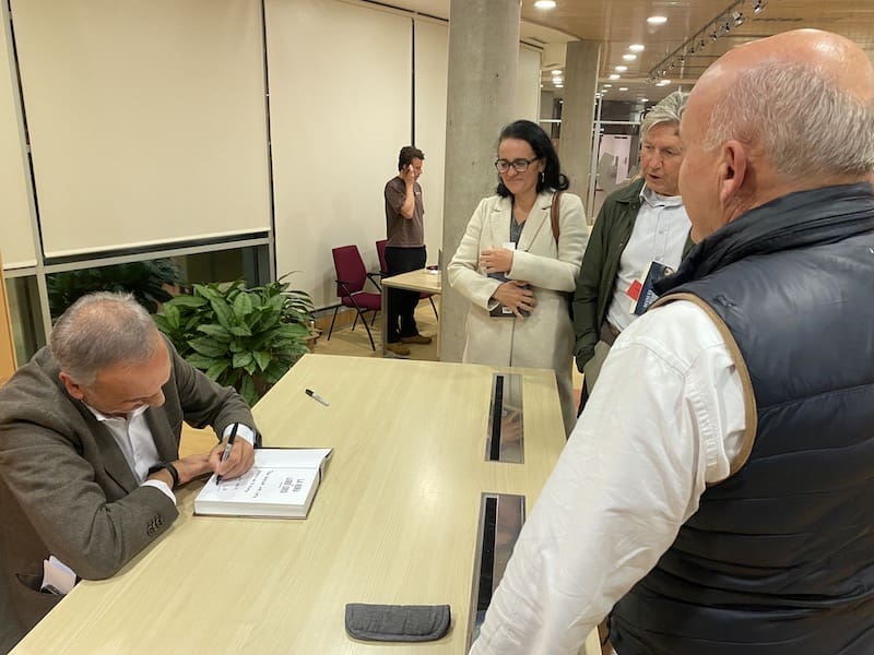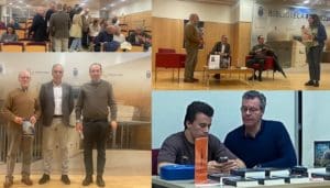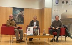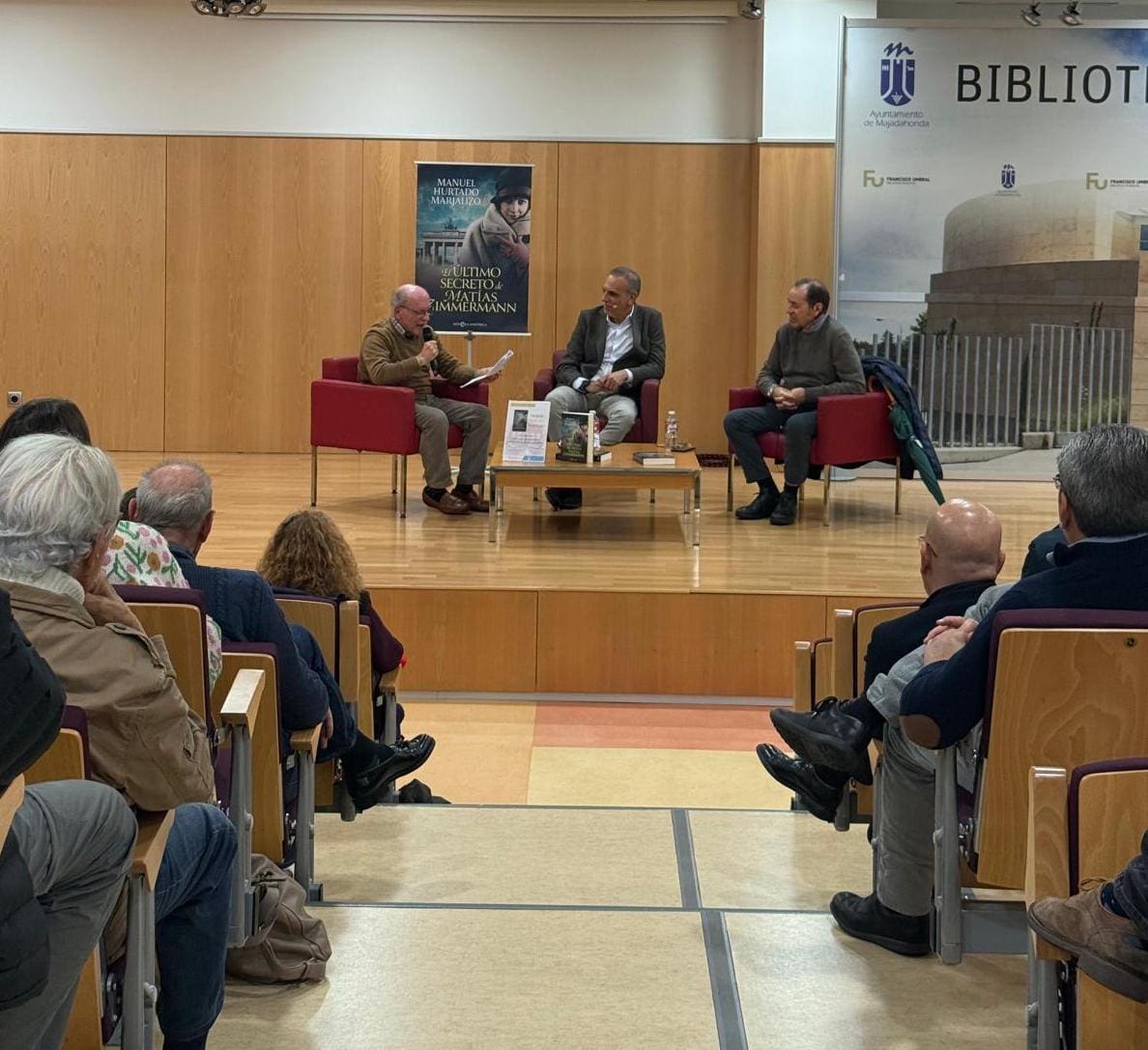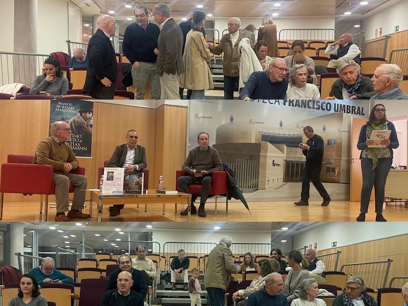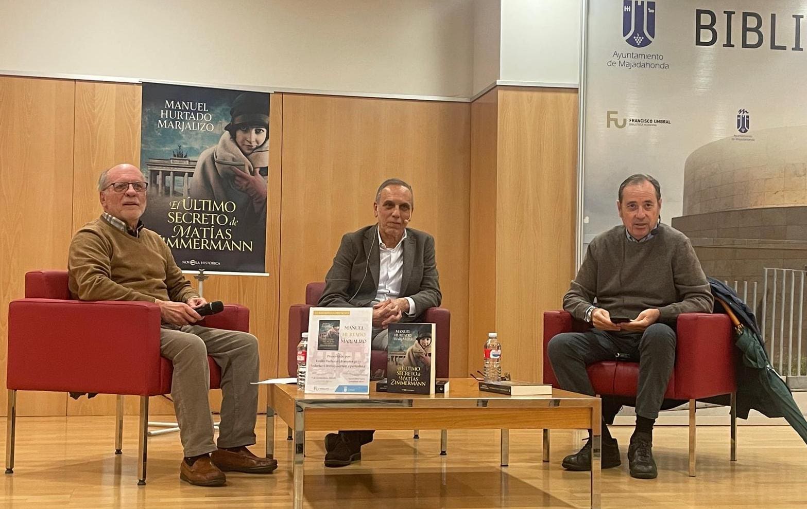 EMILIO PACHECO. (Majadahonda, 5 de noviembre 2025). Presentación de la novela «El Último Secreto de Matías Zimmermann» de Manuel Hurtado Marjalizo en la biblioteca municipal Francisco Umbral de Majadahonda. A pesar de las condiciones climatológicas adversas –llovió abundantemente desde dos horas antes de la cita– no faltaron al encuentro literario algunos de los seguidores del autor y la sala registró una notable concurrencia. Para el escritor majariego, esta presentación tenía un profundo significado dado que reside en Majadahonda desde hace veinte años y quiso además que esta fuera la última presentación dentro de una gira que le ha llevado por numerosas ciudades de toda España. Como maestre de ceremonias actuó Federico Utrera, quien presentó a los intervinientes como representante de los distintos géneros de la escritura: de Manuel Hurtado dio una curiosa y desconocida semblanza biográfica y familiar presentándolo como novelista cultivador de «la diosa de la Literatura», pues ya ha escrito varios «best seller» y «se está abriendo paso discretamente en el poblado campo de la conquista de las audiencias millonarias en España». A Emilio Pacheco lo introdujo en el auditorio como dramaturgo, «el género con mayor raíces históricas» del que dijo que si Shakespeare era el autor teatral más emblemático de Londres, Pacheco lo era en Majadahonda y Montiel (Ciudad Real), donde había llevado a las tablas el drama del legendario Pedro el Cruel pero también «motas» de su talento en la comedia, a través de los guiones en alguna exitosa serie de televisión. Por último el propio Federico Utrera se presentó como ensayista y biógrafo, «el género más moderno y al que le toca glosar a los otros dos», que es lo que hizo. Al término de esta doble presentación, Manuel Hurtado pasó a contar algunos pormenores de su novela haciendo hincapié en los escenarios, la realidad del contexto histórico, la elección de los personajes y las épocas en que transcurren los hechos que acaecen en la novela. Finalmente se pasó a un turno de preguntas en animado coloquio entre los asistentes –algunos habían leído ya la novela– donde el autor no tuvo inconveniente en dar a conocer y explicar la forma en que realiza sus composiciones literarias.