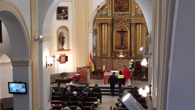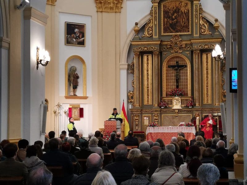 En el acto religioso, ante un gran número de fieles también destacó la presencia del alcalde junto a los concejales de PP, Cs y Vox, una amplia representación de autoridades civiles y militares, así como el Jefe de la Policía Local junto a miembros del cuerpo y de Protección Civil. Finalizada la misa, algunos de los asistentes se trasladaron a la Casa de la Cultura Carmen Conde, lugar donde otro emotivo acto en honor a su Patrona aguardaba a los asistentes. Varios videos sobre el pasado, presente e innovaciones para mejorar el futuro de nuestra Policía Local, pudieron ser visualizados en breves imágenes. Vea las imágenes de la ceremonia pinchando sobre ellas para aumentar su tamaño: