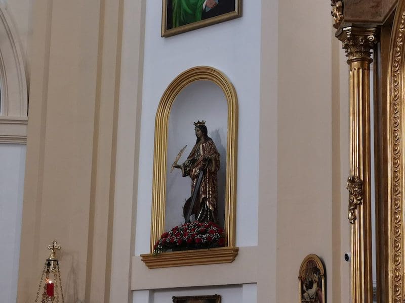 Para finalizar, dirigiéndose a la Policía Local, declaró: “Poneros bajo su protección para proteger a los débiles, a los que pasen necesidad, y sobre todo, para estar al servicio de los hombres”. A los asistentes les rogó «pedirla que interceda por nosotros y nos haga permanecer firmes en la Fe, como ella permaneció firme ante aquel emperador que intentaba demoler su forma de pensar”. Durante la celebración, dos agentes fueron los encargados de realizar las lecturas, así como otros dos de depositar a los pies de la Santa un precioso centro de flores. Y de nuevo la música puso la nota de solemnidad durante el acto: el Coro de la Parroquia fue el encargado de ello, así como de desvelar y entonar el nuevo Himno a Santa Catalina, cuyo autor de música y letra es Rodrigo, que además es el organista de la parroquia.