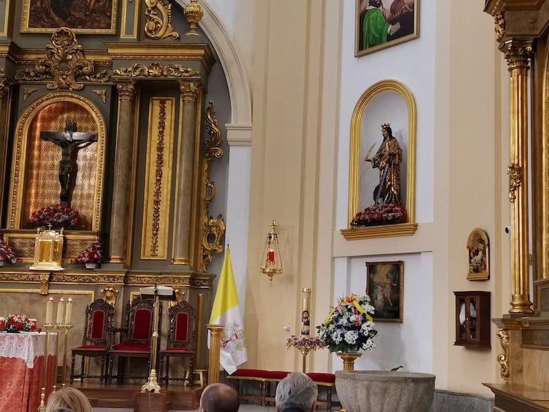 JULIA BACHILLER. Majadahonda celebró el viernes 25 de noviembre (2022) la festividad de Santa Catalina Mártir, patrona de la ciudad y de la Policía Local, motivo por el cual los actos en su honor comenzaron con una Misa Mayor en la parroquia que lleva su nombre. Y el párroco, Juan Francisco Pérez Ruano, comenzó recordándola así: “Celebramos a Santa Catalina de Alejandría, Virgen y Mártir. Según la tradición, fue una mujer fuerte de agudo ingenio y gran sabiduría, su cuerpo se venera piadosamente en el célebre Monasterio del Monte Sinaí”. En su homilía, destacó que “nosotros adoramos a un Dios de vivos, no a un Dios de muertos, donde los Santos tienen el poder de interceder por nosotros. Le pedimos a ella que nos haga permanecer firmes en la Fe, a los que confesamos esa Fe. Y a los que no la confiesan, que sea también ejemplo y modelo para defender sus ideas y que nos defendamos con libertad ante aquellos que quieren quitar la libertad a los hombres”, en una enigmática cita que generó muchos comentarios, ya que es la última celebración que se produce antes de las elecciones municipales de 2023, previstas para dentro de 6 meses (28 de mayo).