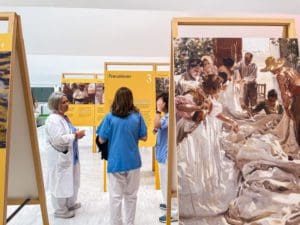 SOBRE LA EXPOSICIÓN. En el centenario de la muerte de Joaquín Sorolla i Bastida (1863-1923), la exposición comenzó su recorrido en agosto de 2023 visitando municipios de menos de cien habitantes de la Comunidad Valenciana. El Hospital Universitario Puerta de Hierro de Majadahonda es el primer centro hospitalario en acoger esta exposición, que visitará otros hospitales del territorio nacional, como los dos hospitales malagueños donde se está inaugurando también hoy, coincidiendo con Día Mundial del Arte: el Hospital Materno-Infantil y el Hospital Regional Universitario de Málaga. La exposición recoge una muestra significativa de la obra del pintor valenciano y quedará a disposición de todos los visitantes, pacientes, familiares y personal del hospital en el vestíbulo principal al menos durante el próximo año. La comisaria y mediadora cultural de la exposición ¿Sorolla en un hospital?, Ana Folguera, ha ofrecido una visita guiada a la exposición para los asistentes, así como una mediación específica para el personal sanitario.