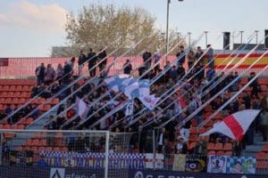 MAJADAHONDA MAGAZIN EN MATAPIÑONERA (SANSE) Y EN EL FUENLABRADA-ORIHUELA. Para contrarrestar al Orihuela, el Rayo Majadahonda viaja con toda la artillería, con el objetivo de poner fin a este bache que le ha llevado a poner su liderato en peligro, primer puesto que aseguraría el Rayito incluso en caso de empate, aunque los de Guille no se conformarán con ello. El encuentro se disputa en Los Arcos, uno de los campos más bonitos del grupo 5º de la Segunda Federación, estadio que tendrá colorido rojo, azul y blanco gracias al medio centenar de rayistas que acompañarán al Rayo Majadahonda. Lo hacen otra semana más, en un viaje de casi 1.000 km de ida y vuelta, periplo que culminará con la llegada a Majadahonda sobre las 2 de la mañana, debido al desfavorable horario puesto por los alicantinos, lo que ha evitado un mayor desplazamiento majariego, pues el precio ofrecido por el Rayo Majadahonda de 20 euros (bus+entrada), era más que apetecible.