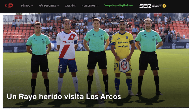 LA PRENSA ALICANTINA, EXPECTANTE CON LA VISITA DEL RAYO MAJADAHONDA. LA CADENA SER TITULA en su previa: “Un Rayo herido visita Los Arcos” y explica que “el césped mojado del Campo Municipal de Los Arcos espera inquieto la previa de uno de los partidos más difíciles del curso. El líder del Grupo V de Segunda RFEF visita la Vega Baja en un tramo de duelos directos clave en la carrera por el ascenso. El Rayo Majadahonda ha dominado con solidez la clasificación, pero viene de perder y de quedarse sin colchón respecto al segundo. Con la misma obligación de ganar que un Orihuela CF que perdía la 5ª posición en su visita a Fuenlabrada. Los de Carlos de las Cuevas han conseguido dar con la tecla defensiva y llevan 4 citas seguidas sin perder. Recuperando piezas en la retaguardia y con la mirada firme en brindar una nueva alegría al respetable que acuda el domingo a las 18:30 h a su hogar».