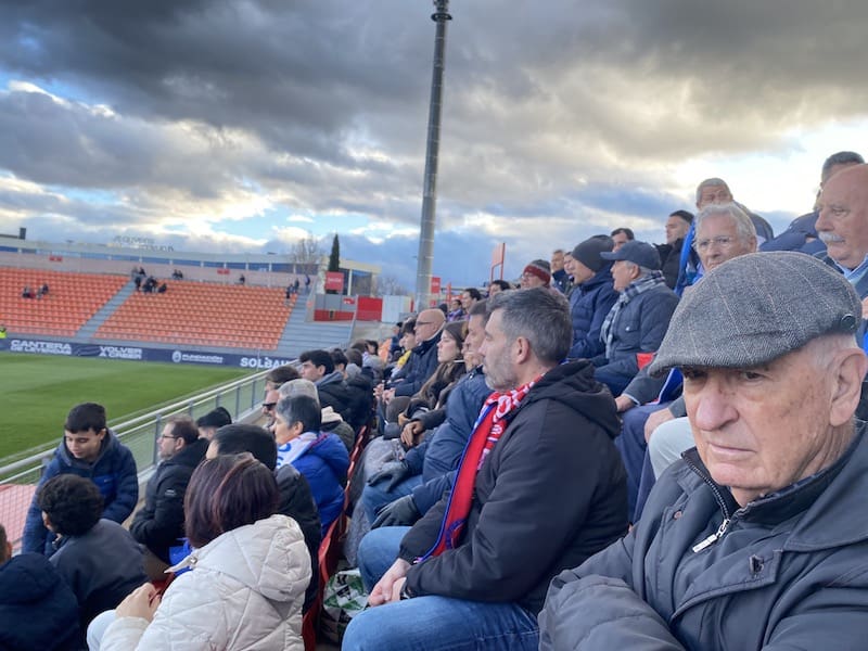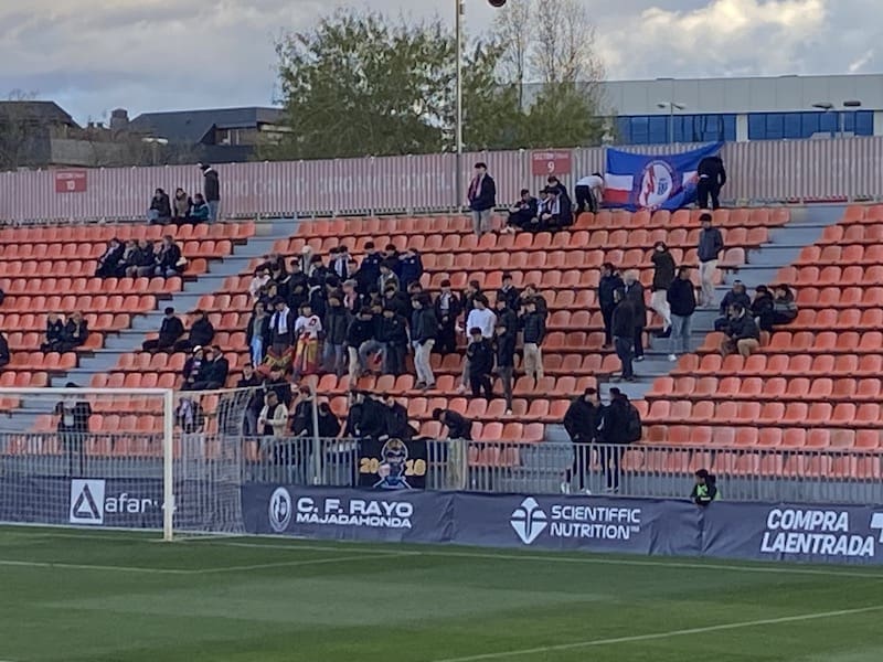 LA AFICIÓN DE LA TRIBUNA SE FUE PREOCUPADA AL DESCANSO Y ENFADADA AL FINAL DEL PARTIDO. La parroquia echaba humo en la grada, sobre todo en la tribuna. Y el «Socu«, a lo suyo, incluso pudo anotar el gol de la victoria en 2 ocasiones, una tras un disparo de Legaz desde 65 metros que salvó Prieto gracias a su velocidad para irse hacia atrás, pues estaba adelantado como un defensa más ante unos rivales encerrados en su campo con dos líneas de 5 como trincheras. La otra ocasión con la que el equipo castellano manchego casi se lleva el partido fue una contra que acabó con un disparo claro desde la frontal que se marchó fuera por poco. Por contra, no consiguió generar nada más el Rayo Majadahonda y se marchó a vestuarios con un buen bofetón a la moral colectiva de la plantilla.