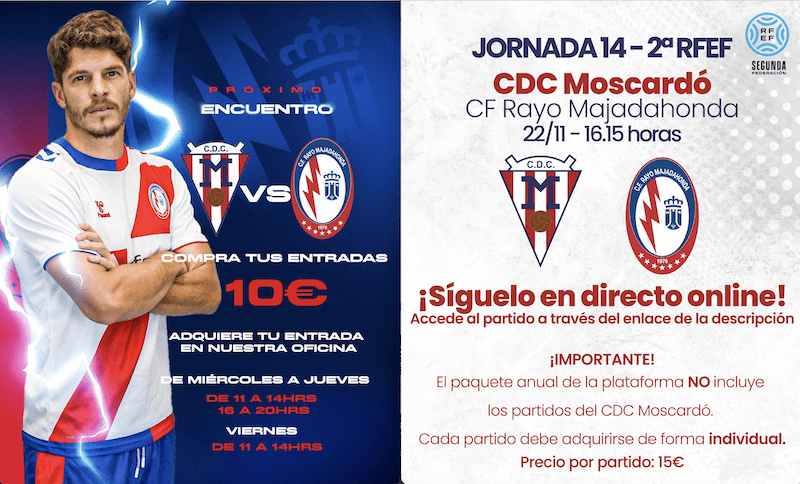 ALBERTO PAZOS. El Rayo Majadahonda viaja este sábado 6 de diciembre (2025) al barrio madrileño de Usera, concretamente a la casa del Moscardó de Javi Poves, que llega completamente desquiciado. El equipo majariego se enfrenta a las 16.15 al CDC Moscardó, conjunto que llega en una dinámica muy negativa tras perder 3 a 0 contra el Fuenlabrada. El Rayo Majadahonda, por su parte, viene de empatar a 0 contra un Navalcarnero que casi elimina al Getafe en Copa del Rey (2-3). La directiva majariega intentó hasta el final un acuerdo de entradas para que ambas aficiones pudieran disfrutar por 10 euros, tanto del partido de ida como del de vuelta. Sin embargo, la directiva del Moscardó se negó finalmente al pacto.