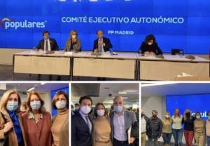 J. FEDERICO MTNEZ. La senadora del PP y diputada regional, Paloma Adrados, afín al sector de Pablo Casado, hizo pública una fotografía tomada este viernes de 4 marzo (2022) en el Comité Ejecutivo del PP de la Comunidad de Madrid en el que revela que este órgano ya está «preparando el Congreso extraordinario que se celebrará en Sevilla los días 1 y 2 de abril» que entronizará a Alberto Núñez Feijoo como nuevo líder del partido y presenta este cónclave madrileño exhibiendo varias fotografías junto a los alcaldes de Majadahonda y Las Rozas. Nada ha transcendido de esta reunión en la que la presidenta madrileña Isabel Ayuso mantuvo una distancia «física» con los tres dirigentes del sector casadista: José Luis Almeida, Ana Camins y Pío García Escudero, al tiempo que los fieles a Pablo Casado presumían en esas mismas fotos de la cercanía a miembros de Nuevas Generaciones, las juventudes del partido. Dos crónicas, una de El País (Juan José Mateo) y otra de ABC (Mariano Calleja) dan las claves de cuales son las dos posiciones:
