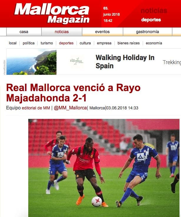 MALLORCA MAGAZIN. La prensa mallorquina admite que el Rayo Majadahonda no fue peor que el Mallorca y Jeisson tuvo el empate en una jugada en la que un defensa balear sacó el balón de la línea. Nuestros colegas de Mallorca Magazin lo resumen así: «Volver a la Segunda División se hizo muy largo y se consiguió la semana pasada. Y el último partido en casa en la tercera liga española tenía que servir para convencer en Palma. Vencieron a Rayo Majadahonda 2-1. El campeón de la temporada venía de esta ciudad de Madrid y también consiguió como el Mallorca el billete defnitivo para ascender a la Segunda División. Por lo tanto, Real Mallorca y Majadahonda se juegan el título de campeón de esta tercera liga, ser el mejor club de los 80 equipos. El último partido como local de la temporada en Palma mostró en la primera mitad a un invitado mucho más fuerte que el anfitrión. El jugador del Rayo Jeisson se plantó solo en el minuto 42 ante Parera, pero el joven portero del Real Mallorca se estiró brillantemente. Real Mallorca se puso en movimiento en la segunda mitad. Un penalty en el minuto 50 sobre el delantero Cedric sentó las bases para el 1-0 del capitán Damià. Solo seis minutos después, Cedric, la estrella del partido, después de un mano a mano con Salcedo, se retrata con el 2-0. Rayo Majadahonda no se dio por vencido y redujo la diferencia de goles en el minuto 80 casi al final con gol de Jairo. La primera mitad se vio ensombrecida por fuertes lluvias, pero en la segunda el sol salió entre las nubes y los futbolistas del entrenador Vicente Moreno lograron una aceptable victoria, pero a pesar de ella en el Mallorca Iberostar Statdion Son Moix, la decisión final tendrá que ser en el partido de vuelta, probablemente el miércoles 6 de junio a las 19:00 horas en Majadahonda o el domingo 10 a las 12.00.