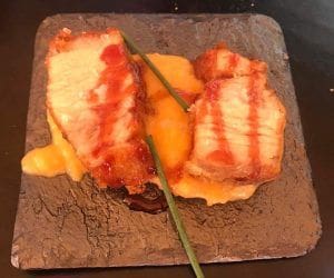 53- Trastevere:” “Solomillo asturiano al Cabrales de cerveza Crunchy de cebolla y chispa de Sichuan”, Boulevard Cervantes 4.