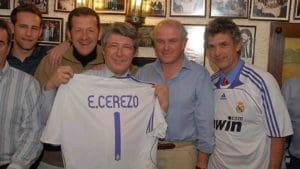 Gracias por acudir a nuestra cita. Cumples 75 años y te encuentras con un regalo excepcional, un libro: «Cerezo. 75 Miradas y más para 75 Años». ¿Cual fué tu reacción?. –Pues fue de asombro, ya me lo habían comunicado al principio pero creía que era una broma. Ahora estoy encantado porque la verdad es que ha quedado un libro maravilloso, por lo menos para mí. Y tengo que agradecer a Miguel Riaño, a Matilde García-Duarte, a Roberto Gómez y Miguel Ángel Benzal porque son ellos quienes han hecho posible este libro. Un desfile de personajes del mundo del deporte y del cine se deshicieron en elogios a tu persona. ¿Qué puedes decirnos de este libro?. –Bueno, la verdad es que fue una noche magnífica. Cantidad de amigos del cine y del fútbol que estuvieron presentes en el acto. Hasta me emocioné, porque la verdad es que venían con cariño a verme. El libro es la opinión de 75 personas sobre mí, con lo cual es un orgullo que hayan dedicado un poquito de su tiempo en poder hacerlo. Desde aquí se lo agradezco a todos.