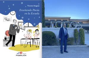 Su libro lo esperamos tener pronto en nuestras manos. Sobre todo por ver esas muestras de aprendices, sin duda cargadas de la espontaneidad y frescura que tanto se echan de menos en poetas mucho más avezados. El que Pigmalión esté detrás de la edición ofrece garantías. También la veteranía del colegio Logos, referencia en la zona de influencia en que se mueve. Majadahonda, por supuesto, y no solo por sus afinidades con el San Jaime,sino también por todos los alumnos majariegos que han frecuentado, siguen haciéndolo, sus aulas: «Cierto. El libro ya está en las librerías. Pero su estreno oficial será el 9 de abril (2024), a las 18:00, en el Salón de Actos de Logos, Molino de la Hoz, Las Rozas. Habrá, desde luego, mas presentaciones, y estará en el Retiro, en la Feria del Libro (2024). Y sí, alumnos de Majadahonda nos han acompañado en todo este tiempo». Se aleja Vicente Araguas, camino de Madrid, que recuerda con parada y fonda en Isaac Peral, antes, mucho antes, del intercambiador, cuando viajaba con el gran Kiko Ledgard, encantado este de ser conocido y reconocido. Paso firme, aire enérgico pero un punto melancólico, como esa Poesía que tanto le inspira, y con la que ilumina a sus alumnos. Prueba de ello este “Enseñando Poesía en la Escuela”, un libro para todas las estaciones. Un libro pionero en estas latitudes donde el arte poético es considerado asunto exótico y, sin embargo, es de lo más esclarecedor y iluminativo. Y es que, como decía Lope de Vega del Amor: “Quien lo probó lo sabe.”