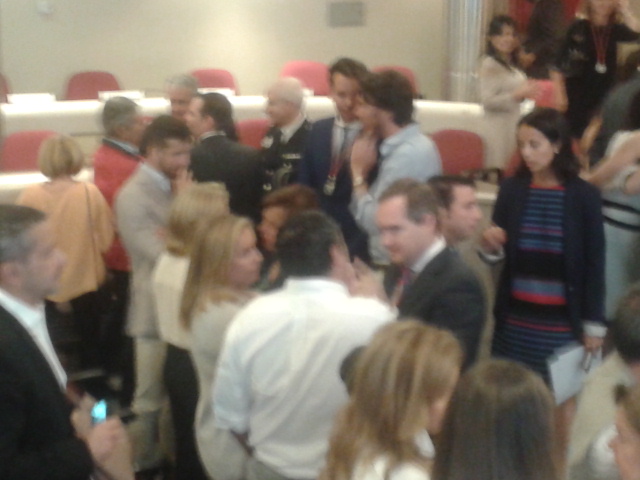 La constitución del Ayuntamiento de Majadahonda siguió los protocolos establecidos que reflejan escenas que ya no se volverán a ver a lo largo de la legislatura: los concejales se sientan en sus escaños por orden alfabético. Por lo tanto, tienen que mezclase necesariamente entre ellos y no por grupos políticos. Algunos asistentes entre el público lamentaron que no fuera así siempre y otros respiraron tranquilos cuando vieron a sus elegidos regresar con los restantes miembros de su partido. Y finalmente, antes de posar para la foto oficial de la Corporación 2015-2019, tuvieron que amalgamarse de nuevo en improvisados corrillos, charlas distendidas y conversaciones frugales, lejos de la batalla política diaria que a buen seguro les enfrascará en los próximos cuatro años. Estas fueron algunas de las imágenes más curiosas captadas por MJD Magazin: