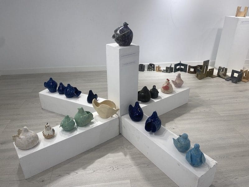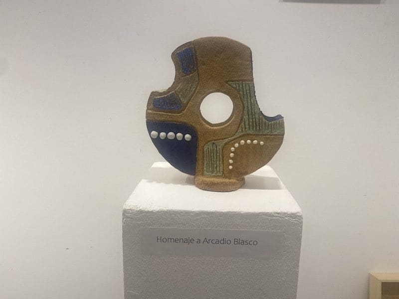 LIDIA GARCIA. La escultora más representativa de Majadahonda, Carmen Perujo (Sevilla, 1930) ha recibido este mes de junio (2023) a sus 93 años de edad un homenaje de los alumnos del Taller Municipal de Cerámica que dirige su hija, la escultora y ceramista Agar Blasco Perujo, una de cuyas obras también figura en la Casa de la Cultura. En la exposición, que fue clausurada el 24 de junio (2023), figuraba también un homenaje al escultor alicantino Arcadio Blasco, que también vivió y falleció en Majadahonda con 85 años y que estuvo casado con Carmen Perujo, con quien compartió incluso taller hasta el momento de su separación matrimonial. Precisamente el Museo de Arte Contemporáneo de Alicante (MACA) también ha recordado al artista en el décimo aniversario de su fallecimiento, según refleja una nota de prensa del Ayuntamiento de Alicante, que indica que su obra Objeto-idea [Objecte-idea] 1969 ha sido depositada por un periodo de cinco años por José Piqueras, y se puede contemplar en la planta baja de este Museo de Arte Contemporáneo.