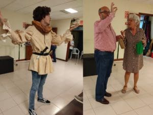 ¿Cuánto tiempo dedicáis a la preparación de una obra antes de su estreno? –Eusebio Luna González: Habitualmente comenzamos a prepararla en octubre y estrenamos entre mayo y junio. Concha Calderón: Empezamos la selección de obra a mediados de septiembre y el propósito de estreno suele ser para el mes de mayo, pero este año no había espacio libre en la Casa de la Cultura y nos hemos retrasado. Sabemos que el 25 de junio no es la mejor fecha, pero animamos a todo el mundo a que acuda a ver «Desmontando a Shakespeare» porque lo pasarán estupendamente. ¿Hay un papel para cada integrante de la compañia? –Eusebio Luna González: No siempre, pero intentamos que siempre haya un papel para todos. Los vestuarios y el decorado, ¿es vuestro? –Concha Calderón: Es todo nuestro, casero e imaginativo. Eusebio Luna González: Una vez decidido el vestuario y el decorado, si podemos reutilizar lo que tenemos de obras anteriores se utiliza, y lo que no tenemos se fabrica o se compra.