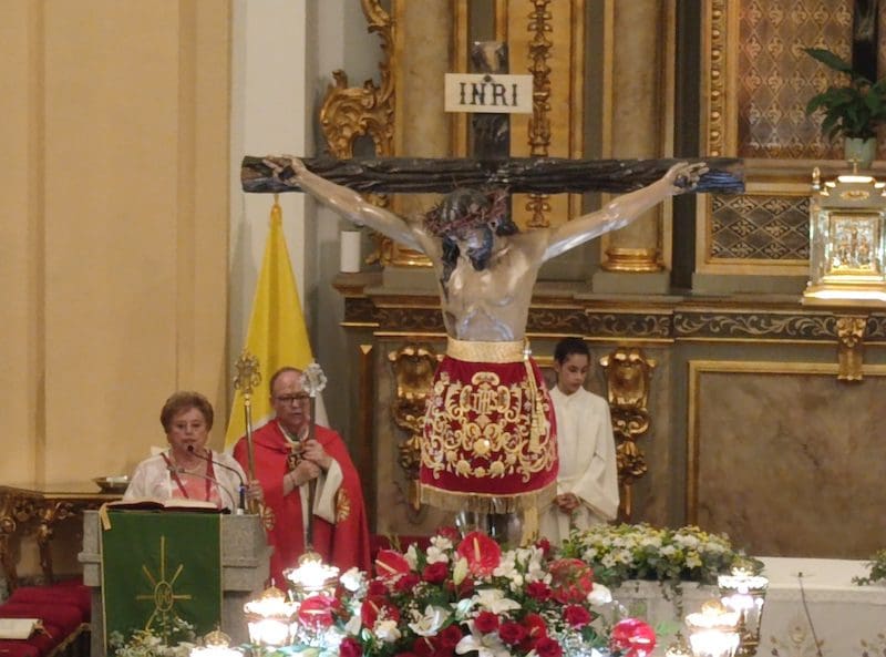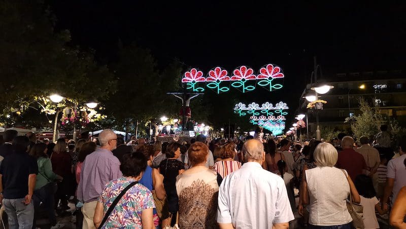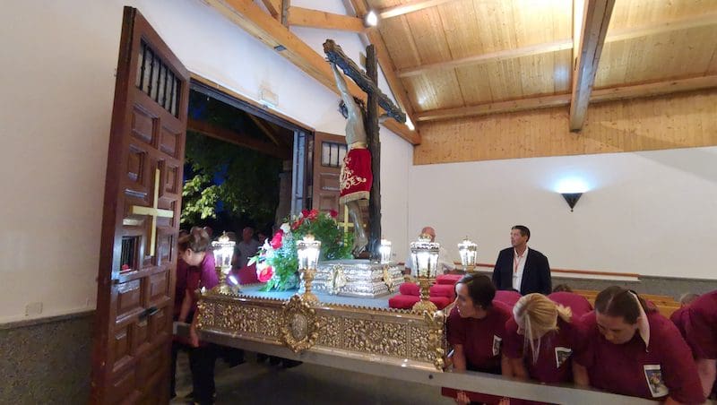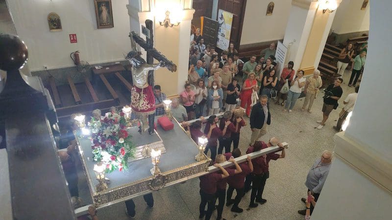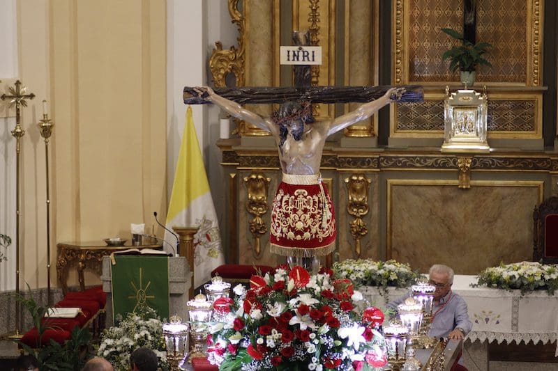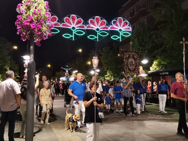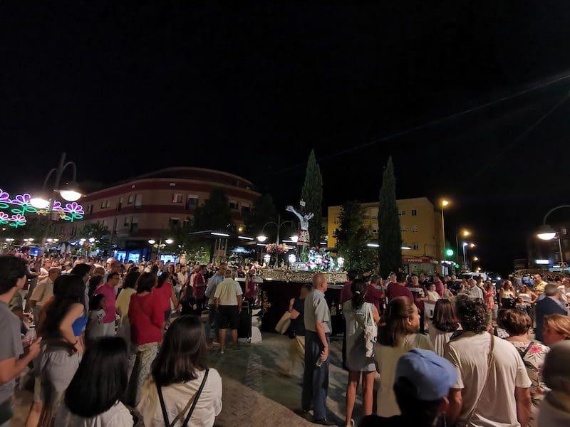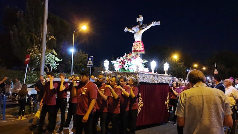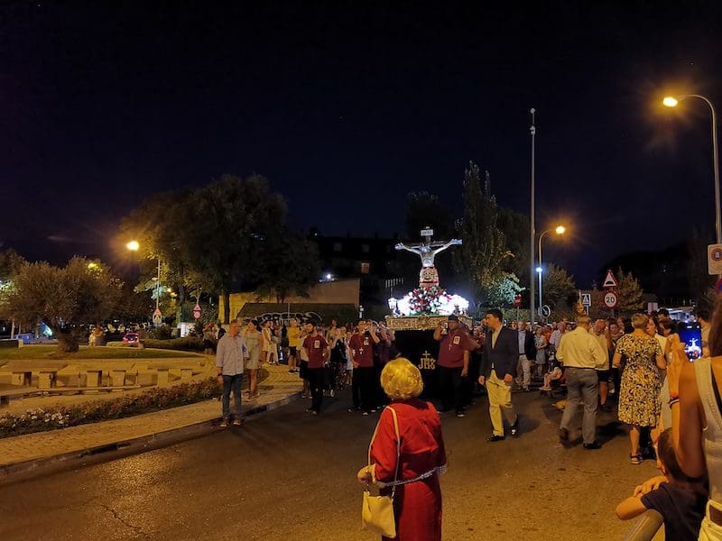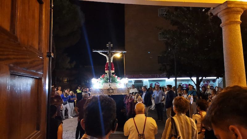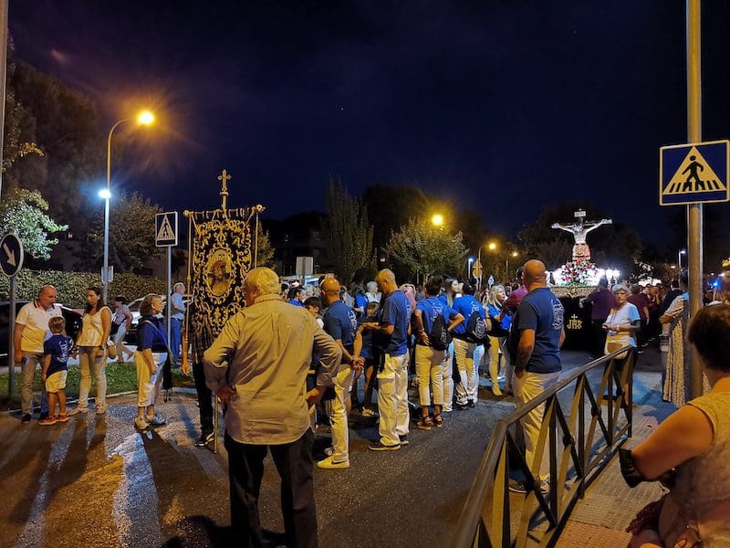 JULIA BACHILLER. Uno de los actos más relevantes de las Fiestas Patronales de Majadahonda tuvo lugar este sábado 10 de septiembre (2022): el traslado en Procesión del Santísimo Cristo de los Remedios de su ermita a la Parroquia de Santa Catalina Mártir. El patrón de Majadahonda aguardaba en su ermita sobre su precioso trono plateado, hasta que a las 21:00 horas comenzase su traslado a la parroquia. Antes de partir, el párroco Juan Francisco Pérez Ruano dirigiéndose al Cristo, le dijo: “Señor, nos reunimos aquí para trasladarte hasta la parroquia, durante estos días vamos a rendirte culto. Ayúdanos Señor en nuestro caminar de todos los días y protege a este tu pueblo”. Y tras una oración comenzó su trayecto hasta la que por unos días será su casa, lugar donde presidirá los actos religiosos en su honor, y escuchará los agradecimientos y peticiones de sus fieles devotos majariegos.