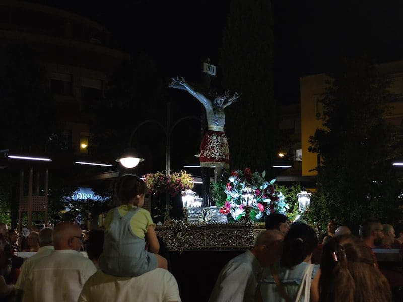 Son tan solo dos ocasiones al año en las cuales el Cristo de los Remedios sale en procesión por la ciudad: Semana Santa y Fiestas Patronales. Y esto es gracias a los anderos, anderas y miembros de su Hermandad, los cuales con esfuerzo y devoción hacen que camine entre la multitud que le aguarda a su paso. Y no solo son sus pies en su caminar. En su pecho junto a su corazón llevan su imagen prendida, gesto de devoción que materializan al fundirse entre lágrimas y fuertes abrazos una vez finalizada la procesión. Ni el cansancio provocado tras el gran esfuerzo realizado les impide festejar este emotivo momento. Y no hay que olvidar a la presidenta de la Hermandad, Marisa Carmona, quien con sus emocionados vítores al Cristo es una pieza fundamental. Ni a los capataces, cuyo peso recae en dirigir a los anderos, modificar sus pasos, atender sus necesidades durante el trayecto, y realizar esas emotivas “levantás”. En esta ocasión destacó nuestro majariego Carlos Montero, junto a la inestimable y habitual colaboración de Carlos Blanco, Ángel Benito, y Daniel Ratón, procedentes de la Hermandad de Jesús el Pobre de Madrid. Tan solo nos queda felicitar a la Agrupación Musical “La Columna de Alcalá”, que con sus magníficas interpretaciones confieren la solemnidad acorde con este tipo de actos.