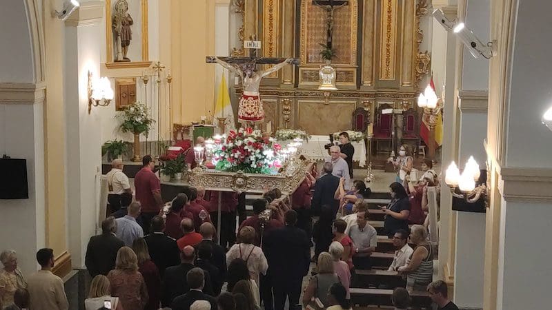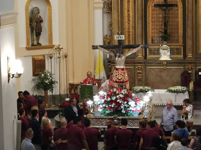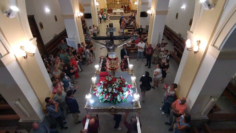 Pasadas las 23:00 horas finalizaba la procesión, algo que nuestro cura párroco anunciaba así: “Señor, ya estamos en casa, hemos llegado. Después de dos años (periodo de tiempo en el que la pandemia impidió su realización), te pedimos Señor que nos permitas celebrar unas fiestas con alegría, con júbilo, teniéndote siempre presente a ti, y presente a los demás. Ayúdanos Señor a pasar estos días en comunión, formando una gran comunidad y buscando siempre favorecer a los demás”. Finalizadas estas palabras impartió una bendición a los presentes. Seguidamente se escuchó el himno del Cristo de los Remedios, y entre aplausos y vítores concluyó el acto. Destacar la presencia de numerosos vecinos que aguardaban a lo largo del recorrido la llegada del paso para seguidamente unirse a él, a las Peñas de la Majada y la Albarda, que desde un primer momento formaron parte de esta comitiva de acompañamiento al Cristo. También al Jefe de la Policía Municipal, Ismael Illan y a sus agentes, a los que una vez más hay que felicitar por desalojar de obstáculos el trayecto y llevar a buen fin a esta numerosa comitiva. Y en el ámbito político el alcalde y algunos de los concejales, que también asistieron a este tradicional evento religioso que da inicio a las Fiestas.