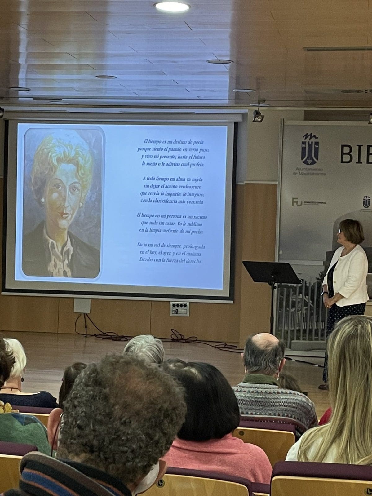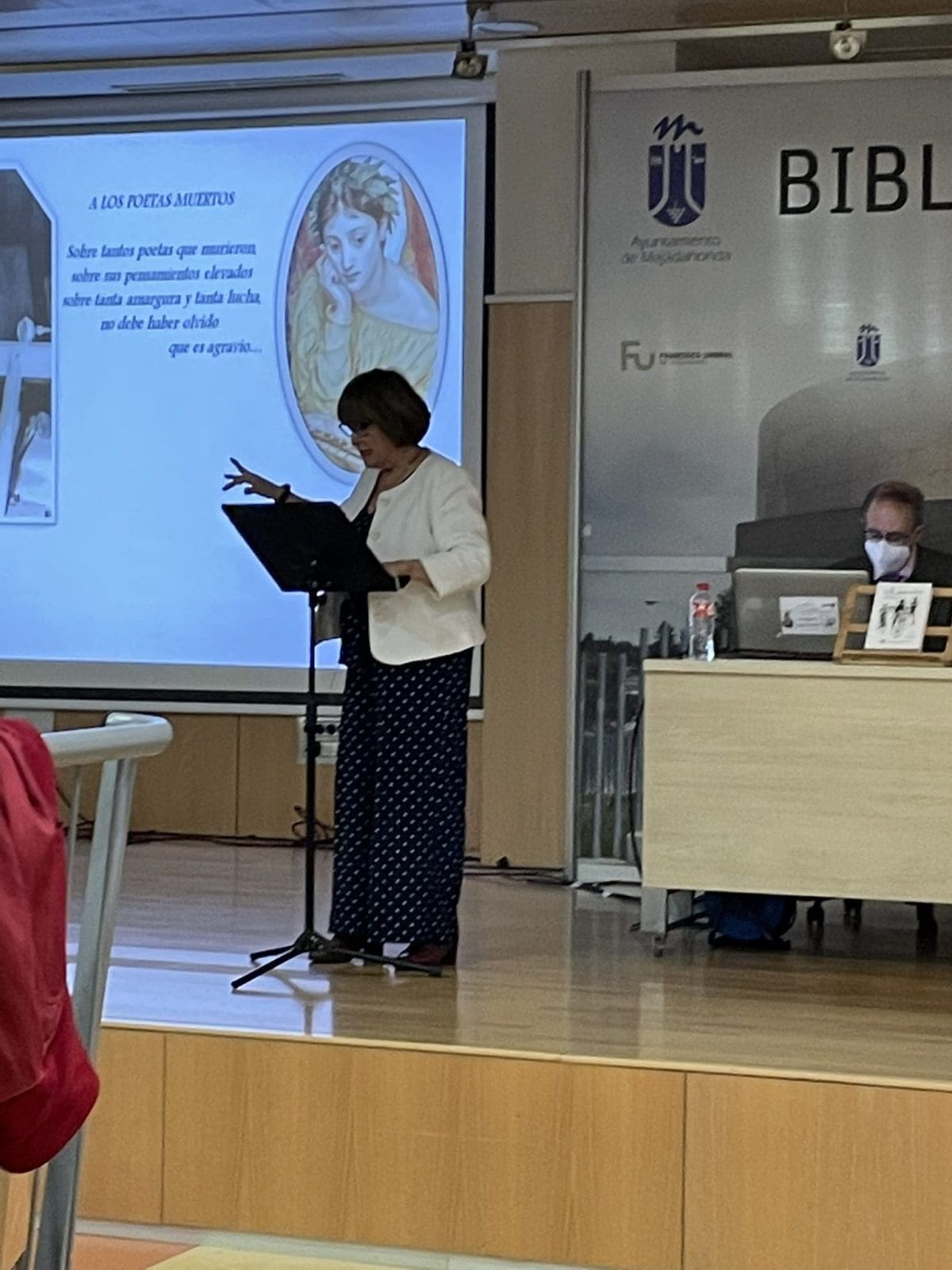 Lo cierto es que el salón de actos de la Biblioteca Francisco Umbral de Majadahonda acogió este viernes 11 de febrero (2022) la presentación de la «Antología Poética: Vivir… Amar… Sentir» de Matilde Camus en lo que fue un recorrido por la vida y obra de esta reconocida poeta santanderina, en la voz de su hija Matilde Guisández. El numeroso público que asistió al acto se emocionó ante la belleza y verdad encerrada en los poemas que relataban una vida sensible y que anhelaba: “dar fe notarial de cuanto es vida», afirmando en otro momento su “deseo de encontrar/ la palabra más exacta, desnuda de artificio…”. El piano tocado por Miguel Ángel Durán dialogó en perfecta sintonía con la belleza de los poemas y las fotografías muestras el éxito de público. Ahora solo queda conocer algo más a esta poeta tan relacionada con Majadahonda a través de su hija por medio de su interesante página web.
