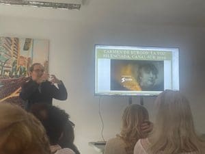 ¿Cómo descubriste a Colombine? –Por una feliz casualidad. Yo trabajaba en el diario «El Sol», que tenía su sede en la plaza de Colón de Madrid y los tiempos muertos los pasaba en esa vidriera del conocimiento que es la Biblioteca Nacional. A salto de mata entre libro y libro me topé con ella. ¿Qué fue lo que te atrajo de su figura para dedicarle un libro tan completo y 30 años de tu vida? – Indudablemente su faceta de periodista. Ya es una profesión de titanes y siempre he admirado a las mujeres que se dedican a ella cuando descubrí que en su época fue la pionera. ¡Y no se sabía! Se la reivindicaba como feminista y novelista, pero no como periodista. Y decidí biografiarla a fondo. Tanto, que han pasado 30 años y el libro sigue volando tras dos ediciones, cien recensiones científicas en todo el mundo –que tuve que recopilar para la ANECA del Ministerio de Educación– 3 películas y documentales y centenares de reseñas periodísticas en prensa, radio y TV, de todo eso se ha hablado en Majadahonda. ¿Crees que la historia ha sido injusta con Carmen de Burgos? –No es un tópico: lo fue en su época, sobre todo después de su muerte, lo fue en la dictadura de Franco y lo es ahora todavía en democracia. Expuse ejemplos concretos en la conferencia sobre como se la ha marginado, tanto por progresistas como por conservadores, como pionera en la demanda del voto para la mujer.
