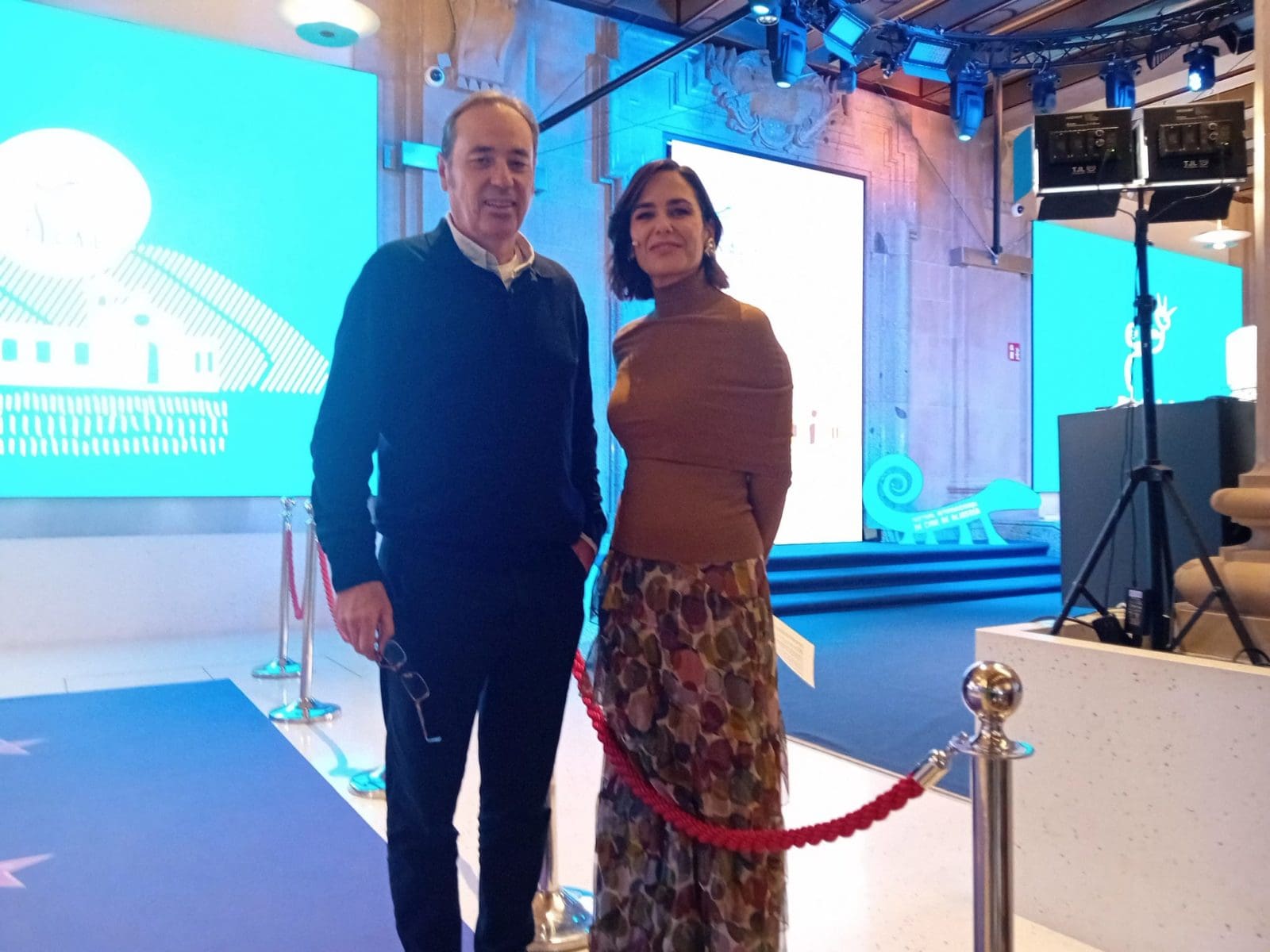 Elena Sánchez, directora y presentadora de «Historia de Nuestro Cine» en TVE 2, con Federico Utrera durante al presentación de FICAL 2025. La periodista apoya al videoarte y es entusiasta admiradora de Marina Abramovic