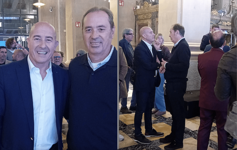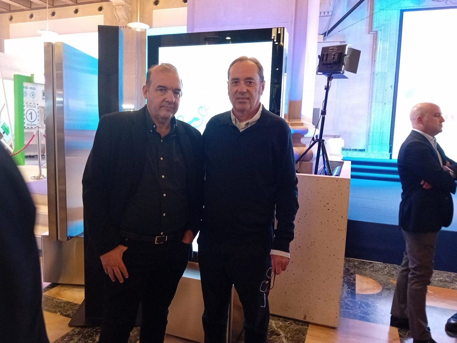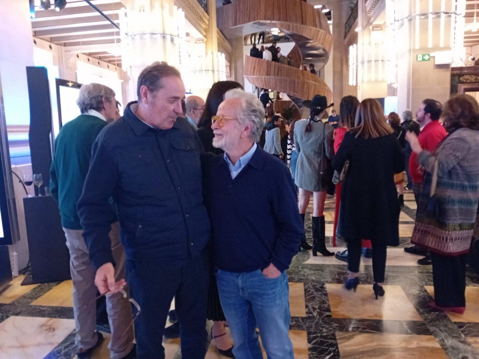 Federico Utrera con el director de cine, Fernando Colomo en la presentación de FICAL 2025 en Madrid. El cineasta es otro apasionado de Marina Abramovic y felicitó al profesor por su iniciativa
