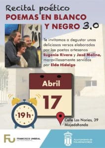 UNA «SEMANA DE LIBRO». Otras citas literarias durante la semana en la Biblioteca: Estas actividades se suman a otras citas literarias que se han desarrollado a lo largo de la semana. El lunes 15 de abril, Francisco García Novell impartió el VIII Seminario de literatura infantil y juvenil a las 19:00 horas. A él asisten un grupo de profesores, bibliotecarios, progenitores, etc., interesados en fomentar la lectura y ser animadores culturales. Esta actividad se celebra en la Biblioteca Municipal Francisco Umbral, un lunes al mes hasta el mes de junio. El miércoles 17, también en la biblioteca y a las 19:00 horas, Eugenio Rivera, escritor e ilustrador y José Molina, escritor vecino de Majadahonda, celebraron “Poemas en blanco y negro 3.0”. Se trataba de un recital poético audiovisual que contó con la colaboración de Elda Hidalgo, documentalista de RTVE con larga experiencia en locución de documentales y audiolibros. La asistencia fue gratuita hasta completar el aforo de la Sala Polivalente. Como todos los primer y tercer jueves de cada mes, este miércoles día 17 se celebró el taller “El Árbol de los cuentos” a cargo de Francisco Sanz Zapata y Mayte Luis Tresfi, cuyo principal objetivo fue acercar a los niños desde 7 a 9 años, a la lectura de una forma lúdica y divertida. “Se trata de conmemorar esta efeméride que se celebra el 23 de abril y ofrecer una programación especial el fin de semana. El propósito es invitar a todos los vecinos y visitantes a descubrir el beneficio de la lectura de una forma participativa”, subraya la concejala de Cultura del PP, Nuria Wilde.