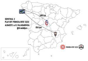 MANU RAMOS. El «formato Rubiales» de «play off» que enfrenta al Rayo Majadahonda y Albacete en Vigo este sábado 4 de junio (2022) a las 18.00 horas obliga al equipo majariego a coger un tren este viernes desde la estación de Atocha hasta Coruña (4 horas), y allí le recogerá el autobús del equipo que le desplaza a Vigo (150 km, 1 hora y media). Peor lo tiene la expedición del Albacete Balompié, que salió este jueves 2 de junio, desde la Ciudad Deportiva Andrés Iniesta a las 10:30 horas por carretera hacia el Aeropuerto Alicante. Desde allí, voló a Santiago, donde se ejercitarán este viernes por la tarde en la Ciudad Deportiva del RC Celta de Vigo. Varios jugadores manchegos han realizado declaraciones sobre el Rayo Majadahonda antes de partir mientras que el partido se ha analizado a fondo en la «Tertulia de La Oliva«, el programa de Radio Majadahonda.