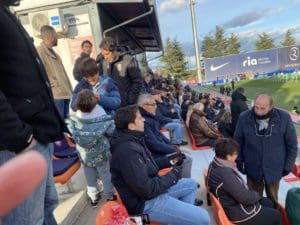 SILVIA ANULA. «Lo que no te mata te hace más fuerte». Así se pudo resumir la tarde – noche vivida del sábado 24 de febrero (2024) en el Cerro del Espino en el partido correspondiente a la Jornada 25 entre el Rayo Majadahonda y la UE Cornellá. Se vio un Rayo Majadahonda con iniciativa, fuerte, que salió a morder, haciendo fútbol, dominando y bien plantado en todas sus líneas, así como con capacidad de dominar el encuentro prácticamente toda la primera mitad, a pesar de la inferioridad numérica tras una tempranera, muy rigurosa y polémica expulsión, lo que obligó a que el equipo duplicara esfuerzos y aumentara el cansancio. Aún así, no se rindió un Rayo Majadahonda hasta el último pitido final del colegiado, pues lo «siguió intentando segundo a segundo pero sin la fortuna del gol. En la segunda mitad tuvo algo más de posesión la UE Cornellá pero el «Rayito estuvo bien plantado y realizó un partido con «10» pero de «10«. A continuación, las fotografías de los «incondicionales» del Rayo Majadahonda, aquellos que acuden al campo con distintivos del equipo (bufandas, banderas, pañuelos, chandals, abrigos…) y que no se rinden nunca a pesar de las inclemencias del tiempo y de los incumplimientos del Equipo de Gobierno del Ayuntamiento, con su alcaldesa y concejal de Deportes al frente. Todo ello junto a 2 reseñas de la prensa deportiva y de la importante victoria del Juvenil División de Honor en Soria: