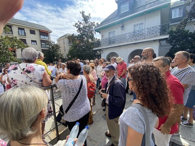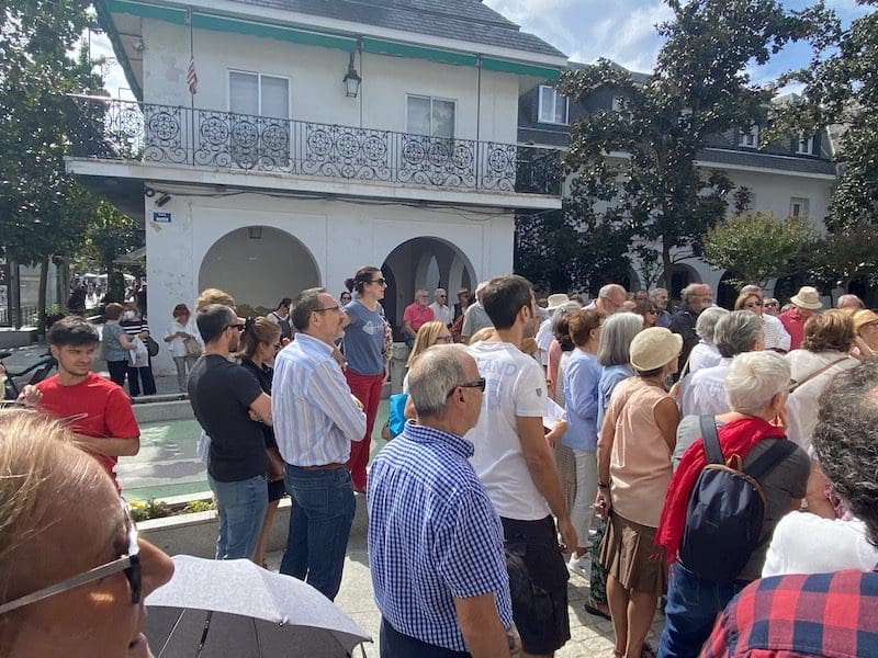 Numerosos vecinos escucharon las razones y argumentos en contra del cierre de la piscina municipal de Huerta Vieja Majadahonda y la supresión de la natación