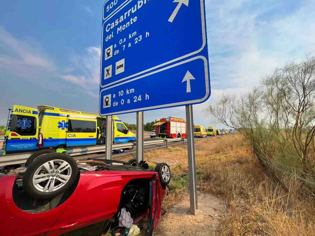El aparatoso siniestro se ha producido en Castilla-La Mancha, concretamente en el término municipal de Casarrubios del Monte, en la provincia de Toledo y a escasos metros del límite provincial con la Comunidad de Madrid. El chico y la chica, ambos veinteñaeros, han sido calificados como «heridos graves» y la mujer de 51 años ha sufrido la fractura de uno de sus tobillos. Esta tercera ocupante del coche siniestrado presentaba concretamente la fractura en el tobillo derecho así como un traumatismo en la zona derecha de su cuerpo, por lo que ha sido trasladada al mismo centro hospitalario, pero con un pronóstico más leve. Para la atención de las víctimas del siniestro se cortó un carril de la A-5 en ese punto, lo que provocó una enorme retención de tráfico. En la intervención han colaborado los bomberos de la Comunidad de Madrid, Protección Civil de El Álamo y Navalcarnero, y la Guardia Civil, que investiga las causas del incidente, informa El Digital de Albacete, que realizó una amplia cobertura del mismo.