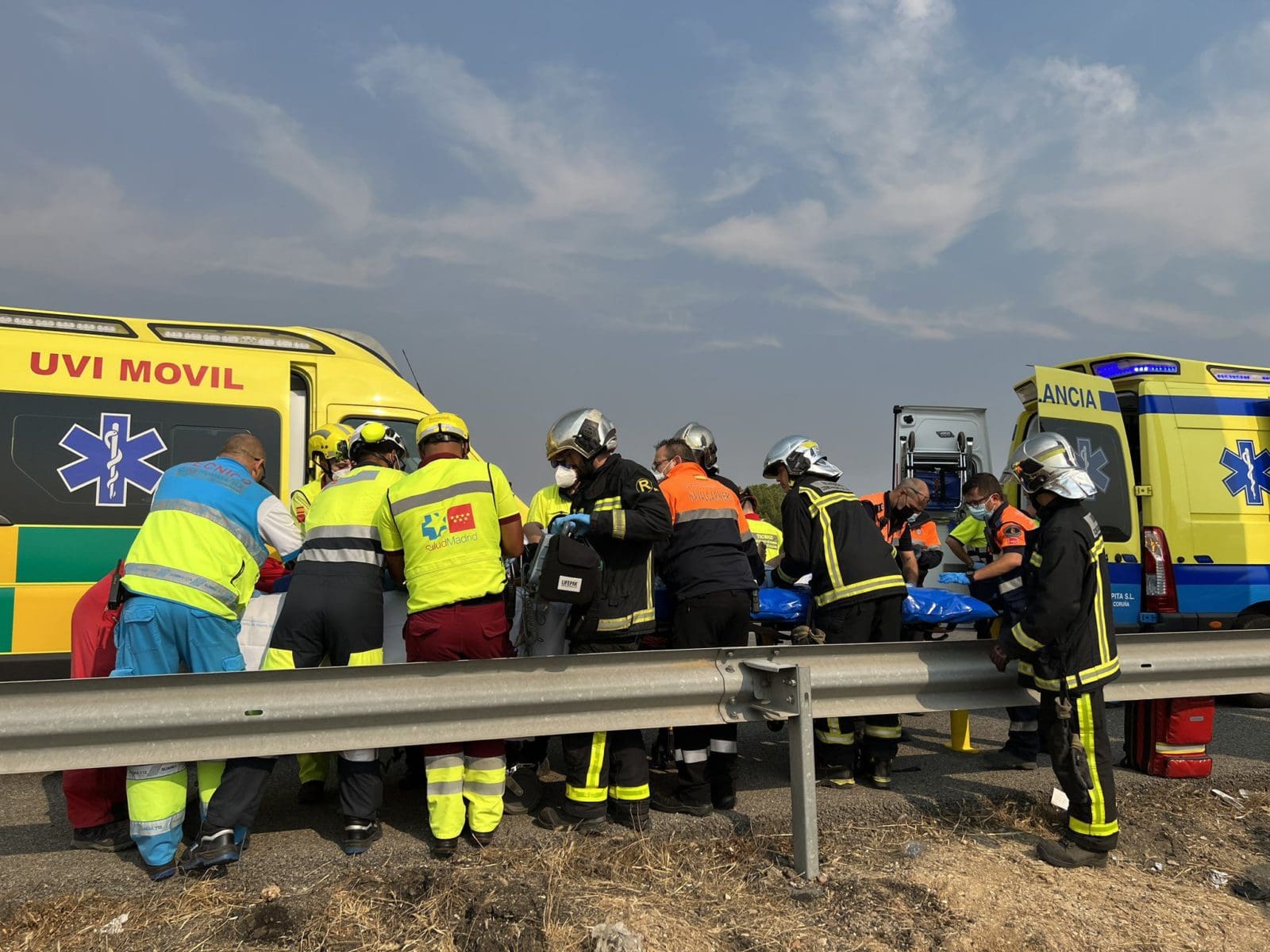 En el vehículo viajaban tres personas. El más perjudicado es un varón de 22 años, que ha sido trasladado por el SUMMA112 en helicóptero al Hospital 12 de Octubre. Presentaba un traumatismo pélvico y abdominal y su pronóstico es bastante grave. También viajaba una mujer de 20 años, que sufrió un traumatismo dorsal y una fractura en la clavícula derecha. Ha sido trasladada potencialmente grave al Hospital Puerta de Hierro. Además, iba en el coche una mujer de 51 años, que ha sido evacuada al Hospital Puerta de Hierro de Majadahonda con una fractura en el tobillo derecho y un traumatismo en la zona derecha del cuerpo. También está potencialmente grave.
