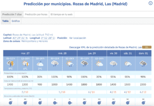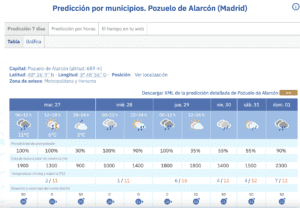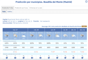 MANU RAMOS. (27 de enero de 2026). La Agencia Estatal de Meteorología (AEMET) ha realizado sus predicciones para esta semana en el Oeste de Madrid y anticipa que los municipios de Majadahonda, Las Rozas, Pozuelo y Boadilla van a sufrir una oleada de frío con mínimas de 1 grado, lluvia copiosa sobre todo este martes 27 de enero, vientos que llegan a los 40 kilómetros por hora y hasta nieve en sus cotas más altas. AEMET es un organismo que tiene por objeto el desarrollo, implantación y prestación de los servicios meteorológicos de competencia del Estado y el apoyo al ejercicio de otras políticas públicas y actividades privadas, contribuyendo a la seguridad de personas y bienes, y al bienestar y desarrollo sostenible de la sociedad española. La Agencia ostenta además la condición de autoridad meteorológica del Estado, así como la condición de autoridad meteorológica aeronáutica. Su informe sobre estas cuatro ciudades del Oeste de Madrid, que reproducimos en esta misma página, se complementa con otro del periódico «Pozuelo In» que titula: «El frío irrumpe con fuerza y activa alertas por heladas esta semana en Pozuelo, Majadahonda y Boadilla».