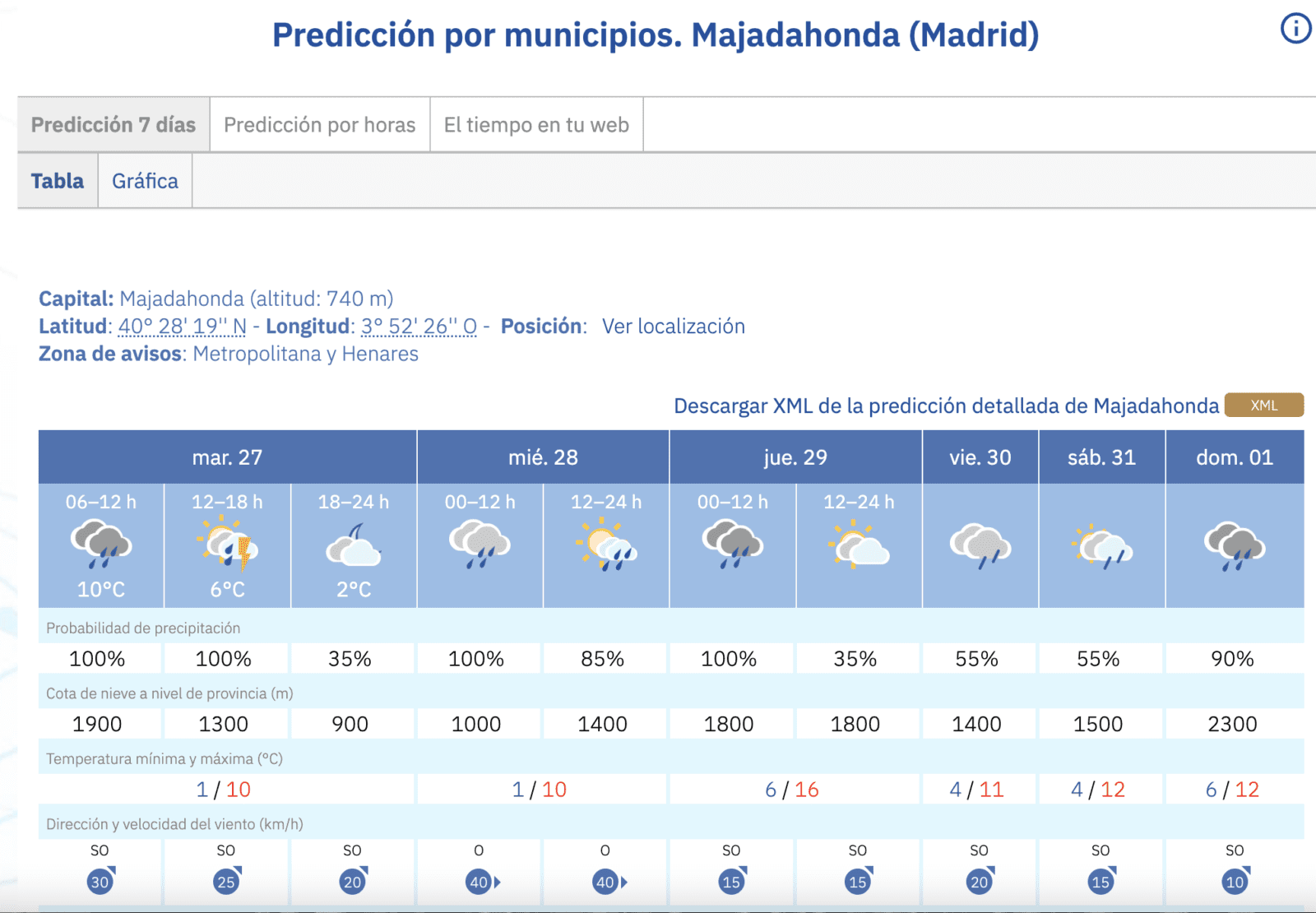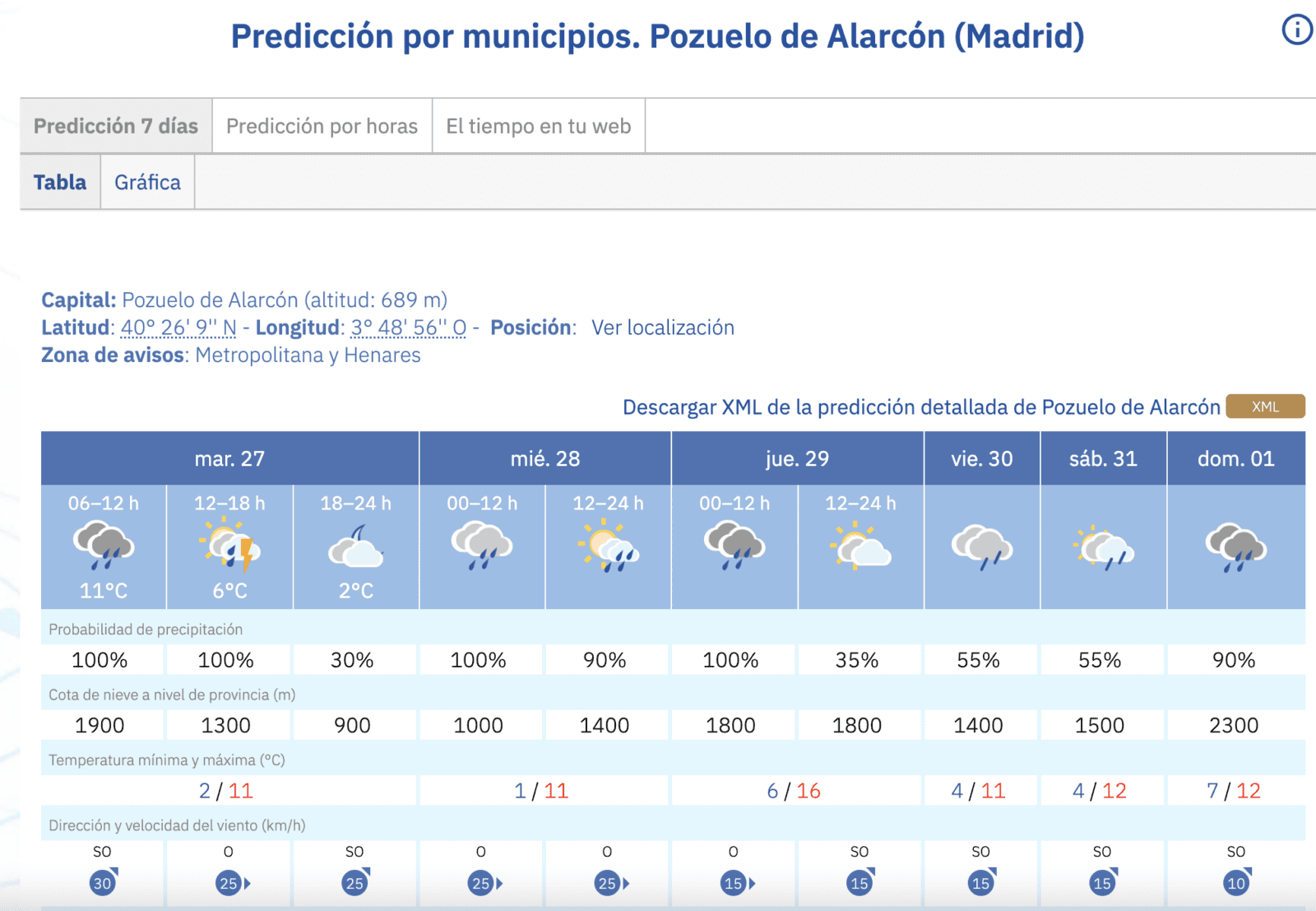 MANU RAMOS. (27 de enero de 2026). La Agencia Estatal de Meteorología (AEMET) ha realizado sus predicciones para esta semana en el Oeste de Madrid y anticipa que los municipios de Majadahonda, Las Rozas, Pozuelo y Boadilla van a sufrir una oleada de frío con mínimas de 1 grado, lluvia copiosa sobre todo este martes 27 de enero, vientos que llegan a los 40 kilómetros por hora y hasta nieve en sus cotas más altas. AEMET es un organismo que tiene por objeto el desarrollo, implantación y prestación de los servicios meteorológicos de competencia del Estado y el apoyo al ejercicio de otras políticas públicas y actividades privadas, contribuyendo a la seguridad de personas y bienes, y al bienestar y desarrollo sostenible de la sociedad española. La Agencia ostenta además la condición de autoridad meteorológica del Estado, así como la condición de autoridad meteorológica aeronáutica. Su informe sobre estas cuatro ciudades del Oeste de Madrid, que reproducimos en esta misma página, se complementa con otro del periódico «Pozuelo In» que titula: «El frío irrumpe con fuerza y activa alertas por heladas esta semana en Pozuelo, Majadahonda y Boadilla».