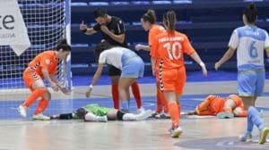 PONTEVEDRA VIVA (Diego Espino). «Derrota ante el Rayo Majadahonda y susto en Raña, con Patri evacuada en ambulancia. Derrota deportiva pero en un segundo plano, pues lo importante en el partido entre Marín Futsal y Rayo Majadahonda fue lo ocurrido en la última jugada de la primera parte, en una acción que provocó la salida de la portera local Patricia Arruti ‘Patri‘, que salió del pabellón de la Raña en camilla y con collarín para ser evacuada al Hospital Quirón Salud Miguel Domínguez. Apenas faltaban unos segundos para el descanso, con 1-2 en el marcador, cuando Patri salió de su portería para intentar cortar a un rival, chocando bruscamente con el visitante Iraia. Ambas jugadoras quedaron tiradas en la cancha. Así permanecieron unos agonizantes minutos hasta que Iraia pudo salir por su propio pie de la pista y los servicios médicos comprobaron que Patri respondía y podía ser evacuada con seguridad. En la jugada, por cierto, que no fue detenida, el balón quedó suelto y con la portería marinense vacía, enviando el balón fuera la majariega Marta de Diego, cediendo el 1-3 en una clara muestra de deportividad», informa el periódico Pontevedra Viva.
