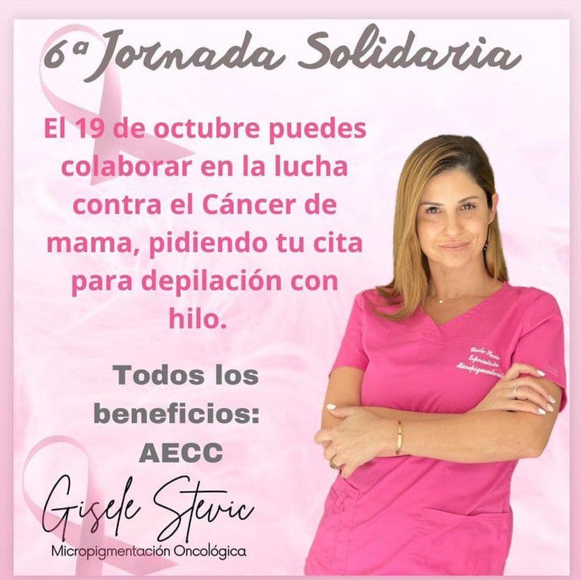 JULIA BACHILLER. Junto con la Asociación Contra el Cáncer con sede en Majadahonda se encontraba este martes 18 de octubre (2022) una joven empresaria del municipio, que nos sorprendió por su loable iniciativa, que lleva años realizando y seguramente muchos desconocerán. Se trata de Gisele Stevic, cuyo negocio identificado con su nombre, en la calle Vasco de Gama 1, oferta numerosos servicios ofertados de estética microblanding, de los cuales pueden informarse en redes sociales a través de Instagram, Facebook e incluso su página web. Destaca sin lugar a dudas su formación en micropigmentacion paramédica y oncológica, la cual realiza gratuitamente a todas aquellas mujeres que han visto como su aspecto físico se ha visto alterado por los efectos de los tratamientos de quimioterapia. E incluso ayuda a disimular las cicatrices tras las operaciones sufridas, trabajo al cual define como la «Jornada Areola Solidaria”. Con ello nos referimos a la reconstrucción de la areola / pezón después de una mastectomía mediante técnicas de micropigmentación de mamas totalmente reconstruidas en 3D, la misma técnica que utiliza para simular el vello de las cejas y pestañas que se pierden tras las sesiones de quimioterapia.
