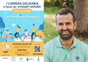 Día del Padre 2023: cartel del evento con el código QR para apuntarse a la I Carrera Solidaria a favor de ‘SYNGAP1 España’: se puede correr 5 ó 10 km, pasear o simplemente pasar la mañana con la Asociación por una finalidad altruista