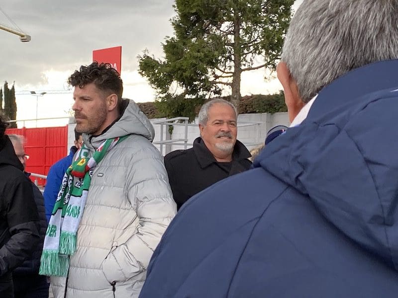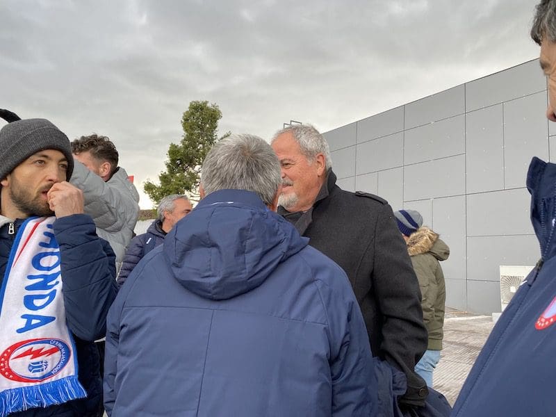 Antonio Iriondo visitó el Cerro del Espino para ver el Rayo Majadahonda-Racing de Santander y conversó con numerosos aficionados rayistas