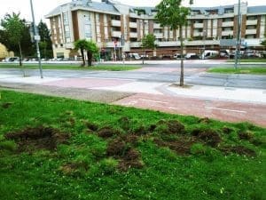 MANU RAMOS. La manada de jabalíes que se introduce por las noches en las calles del núcleo urbano de Majadahonda ha atravesado en la madrugada de este miércoles 21 de agosto (2019) la «frontera» de la Avenida de España, arteria que separa las urbanizaciones cercanas al Monte del Pilar con el núcleo urbano de la ciudad. Y ya han llegado a la rotonda de Pizza Jardín, donde concluye la Avenida Rey Juan Carlos I con la propia Avenida de España, a menos de 500 metros de la Plaza de Colón, donde termina la céntrica Gran Vía. Varios vecinos se han puesto en contacto con MJD Magazin y han enviado fotografías, que han subido también a las redes sociales, en las que por los nuevos jardines destrozados se percibe el paso de la manada. Estos vecinos han manifestado su temor por la cercanía al pueblo ya que «en la Plaza de Colón también hay jardines y césped y es una zona mucho más transitada«. Las quejas hacia el Ayuntamiento de Majadahonda continuan creciendo, al tiempo que se cuestionan algunas de las medidas adoptadas con anterioridad, como la instalación de 1.500 metros de nuevo vallado que al parecer está obligando a los jabalíes a sortear una línea de paso para introducirse por otros «agujeros» menos blindados, como señala el presidente de Amigos de los Caminos de Majadahonda, Jaime Benavides. También se critica la introducción de un horario de apertura y cierre del Monte del Pilar, como apunta con ironía el vecino Marc Asinari: «Nueva estupidez del Ayuntamiento, el Monte del Pilar cierra a las 20:00 y abre a las 10:00 por los jabalíes. Que igual todos los boquetes que hay en las vallas se cierran solos también«.