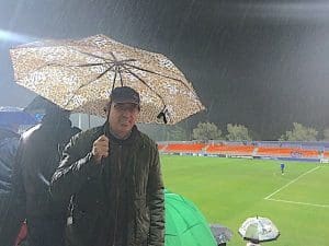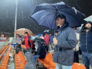 No hay ninguna parte del estadio donde te puedas resguardar de la lluvia… Creo que es el único campo de 1a y 2a RFEF que pase esto…