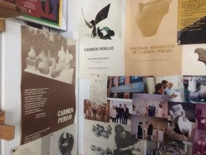 Es en este contexto tienen lugar los hechos que Carmen narra sobre la pequeña pensión que su familia tenía: contaba con 26 habitaciones y su padre le dejaba una habitación para pintar. Una habitación y las sábanas: las sábanas para pintar y la “habitación propia” para crear. Esto fue determinante para su elección de vida, ya que le facilitó el espacio y el material. En ocasiones no se tiene en consideración lo importante que es para las mujeres artistas en ciernes tener disponibilidad de espacio y materiales para llevar a cabo la primera obra creativa. En estos años duros de la postguerra y la resignificación del imaginario colectivo, Carmen Perujo lleva a cabo sus estudios de Bellas Artes en lo que a día de hoy es la Facultad de Bellas Artes de la Universidad de Sevilla.