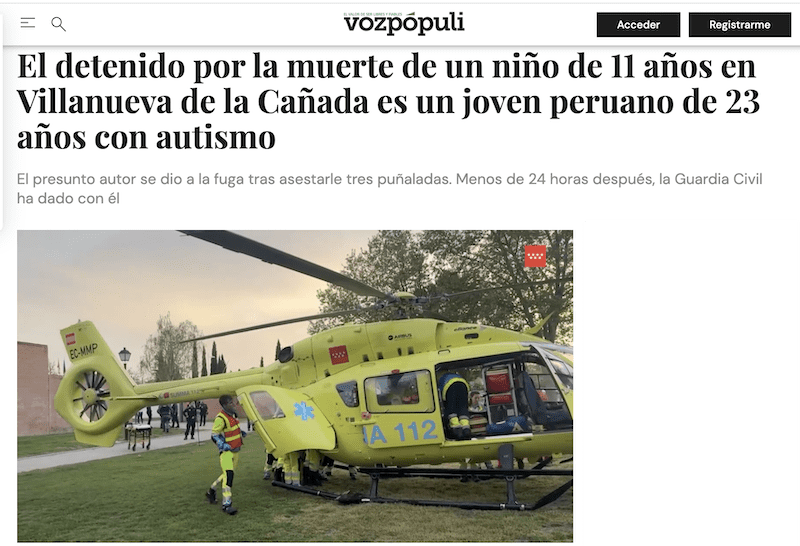 OK Diario: «Existe un gran abanico de severidad dentro de los trastornos llamados trastornos del espectro autista (TEA) y ese grado de severidad es fundamental para conocer el grado de afectación en términos de déficits cognitivos de la persona, también su nivel de conciencia y la capacidad de autogobierno de su comportamiento. A partir de ello también se valorará el grado de imputabilidad del presunto asesino» (psicóloga sanitaria Ana Villarrubia)
