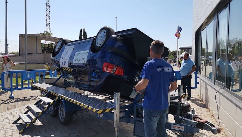 Inevitablemente, el circuito de Educación Vial con sus «karts«, o el simulador de vuelco, fueron las actividades más solicitadas. En este último, incluso los niños podían acceder a comprobar que se siente cuando un vehículo sufre este tipo de accidente. Como bien explicaba el instructor de la actividad, este simulador tiene la finalidad de mostrar la importancia del cinturón de seguridad, su colocación y el ajuste adecuado al cuerpo, que evita mayores lesiones cuando se produce el vuelco del coche, evitando nuestra movilidad en el interior del habitáculo y el aumento de lesiones.